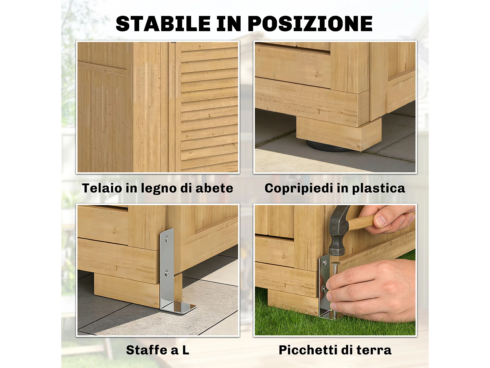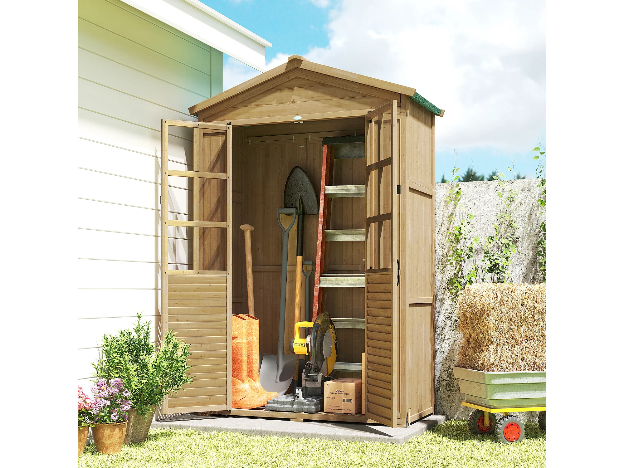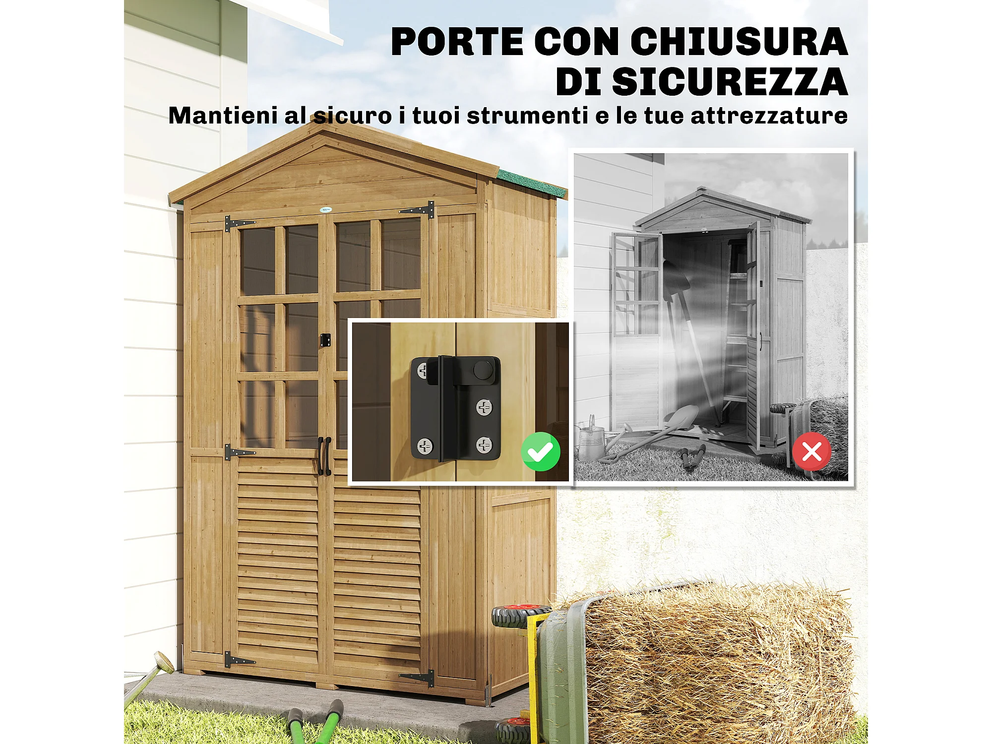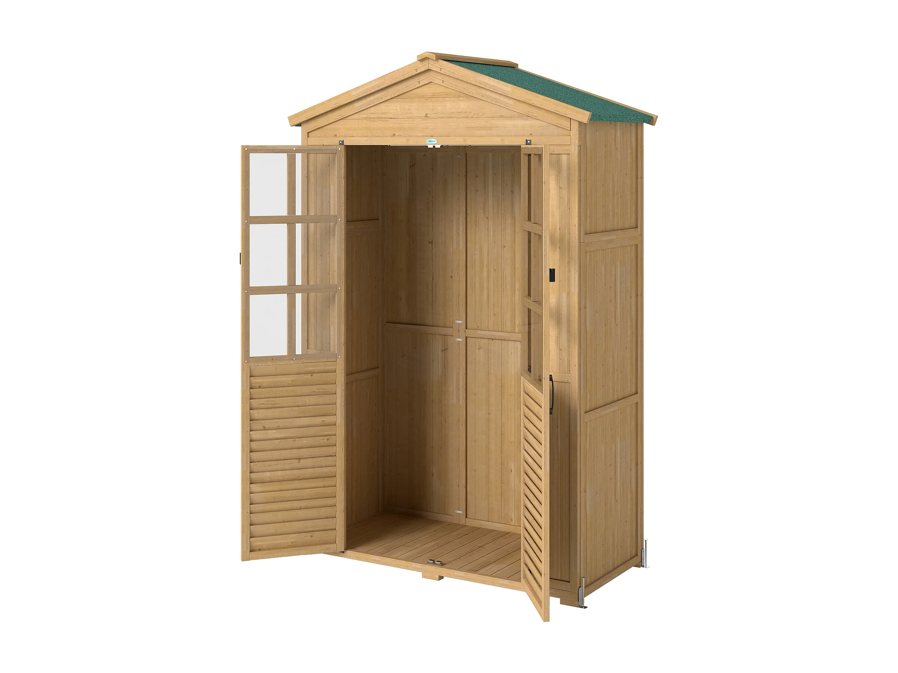 Armadio da giardino con finestre in legno di abete marrone chiaro