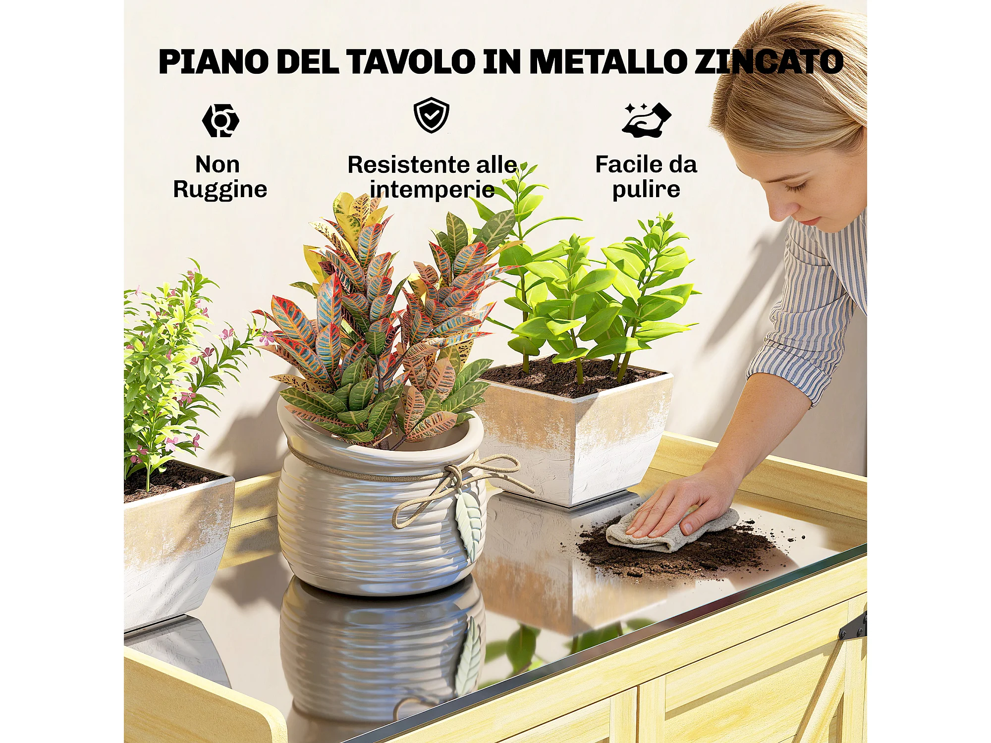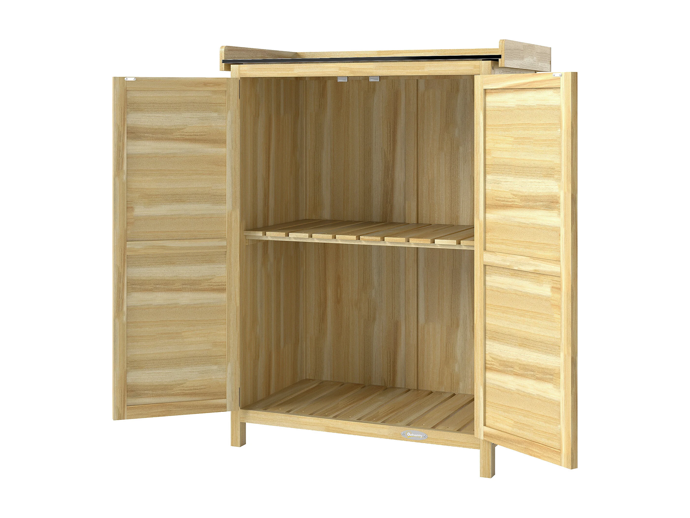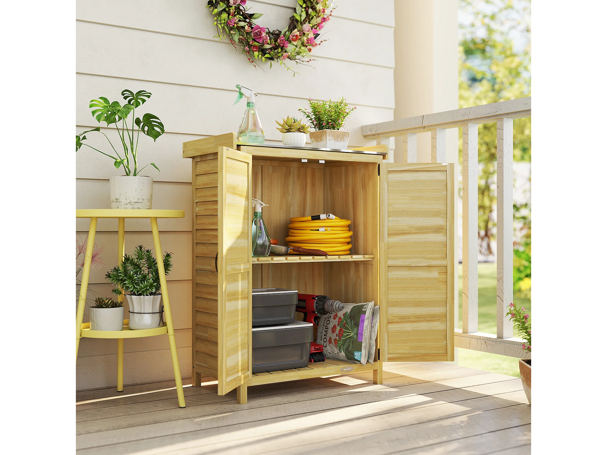 Armadio da giardino con piano in acciaio e legno naturale