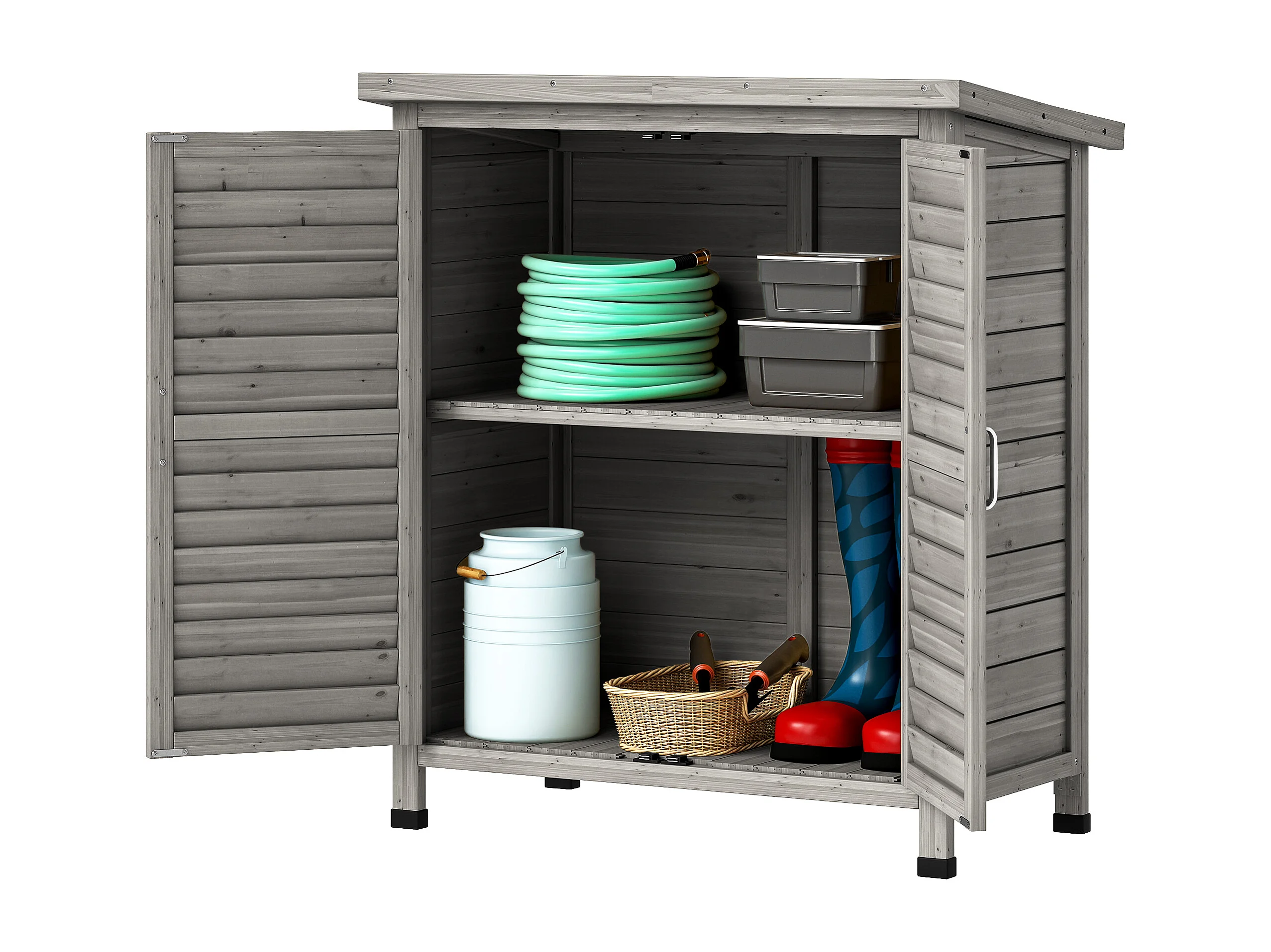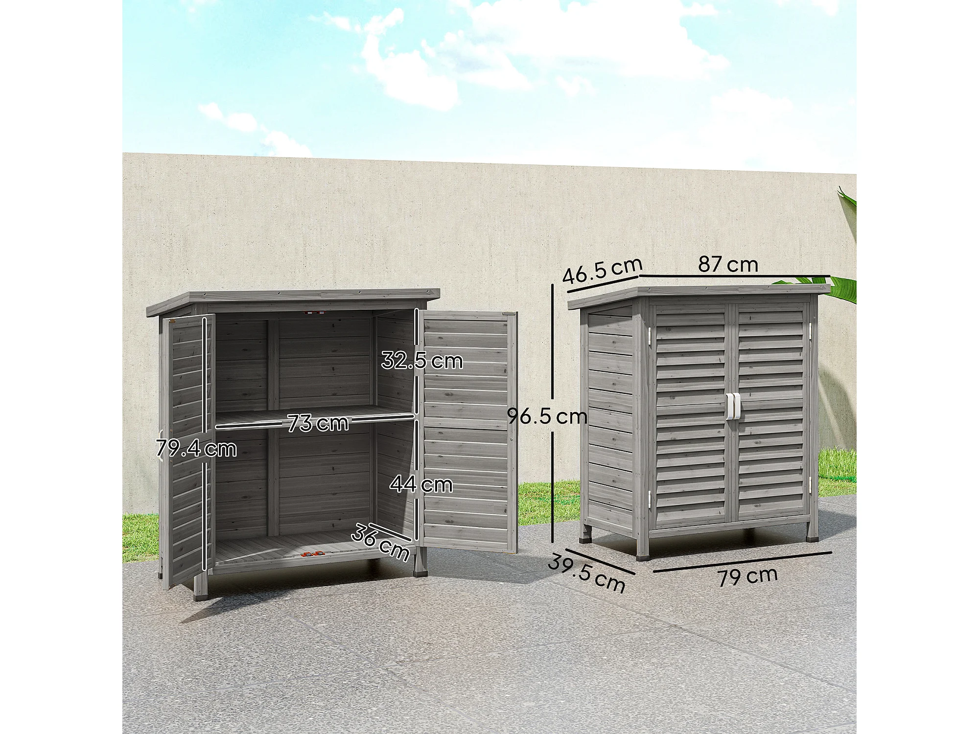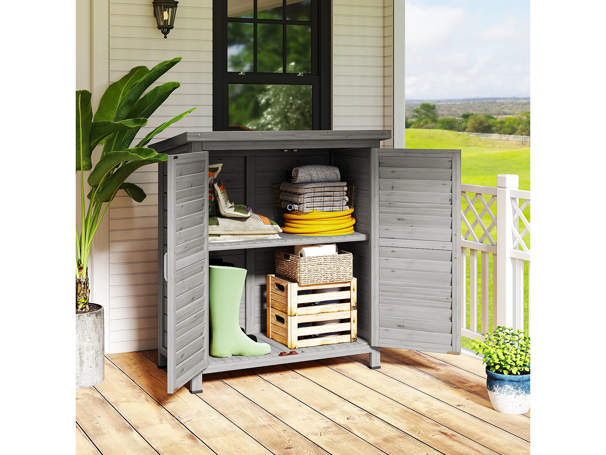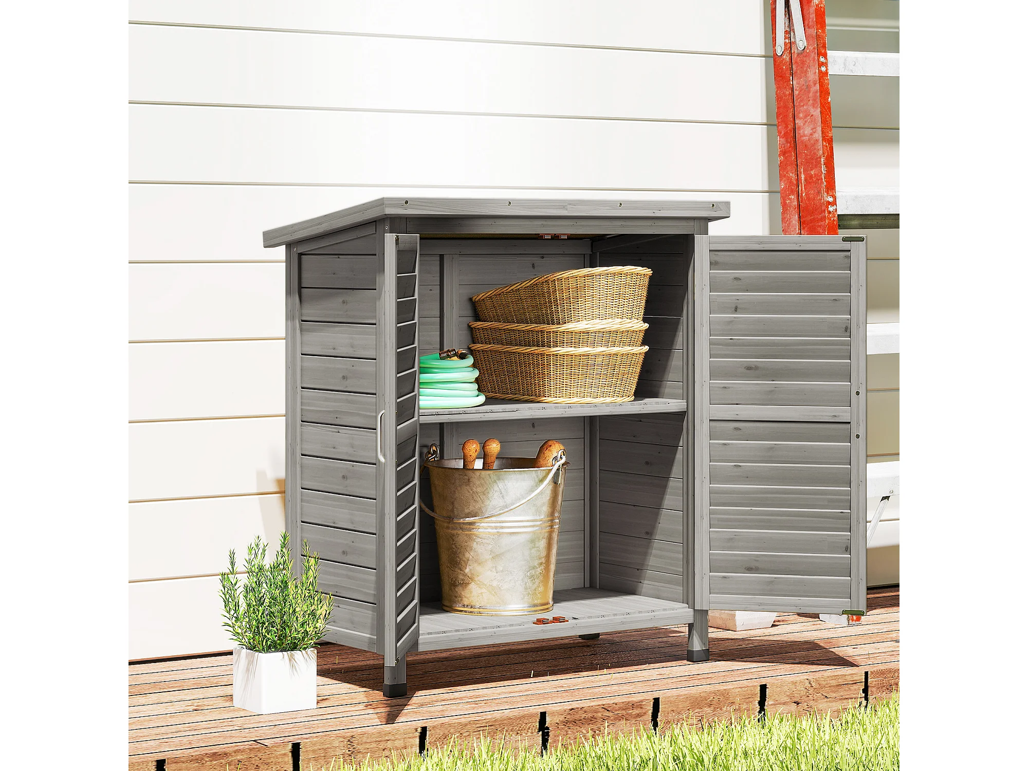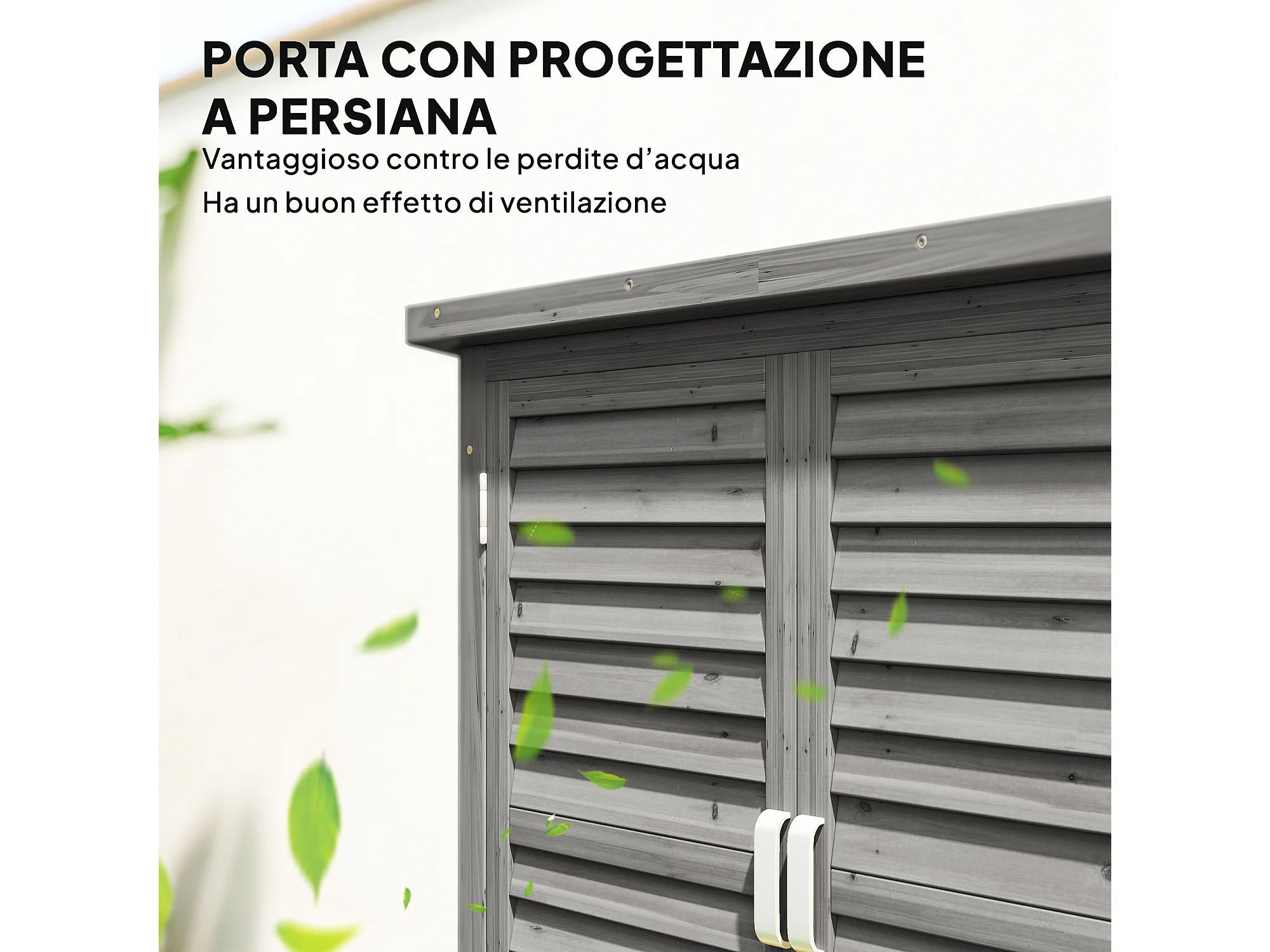 Armadio da giardino con porte a persiana in legno grigio