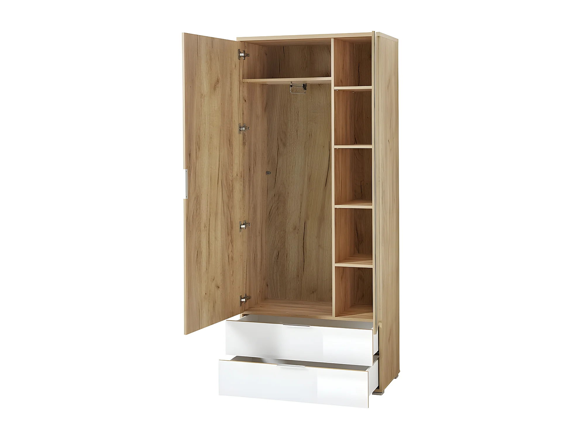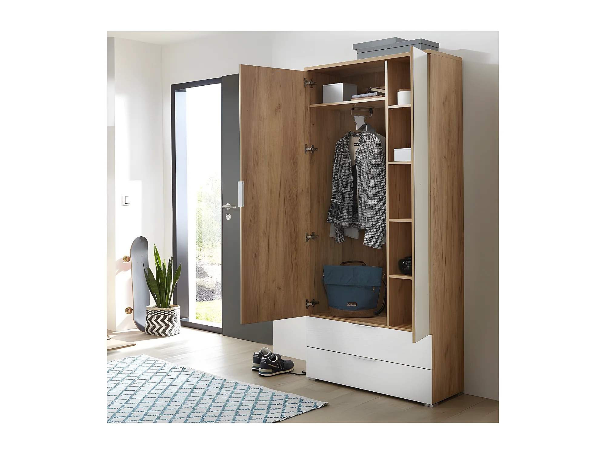 Set guardaroba d'ingresso 80x35x175.5 cm - 2 ante e 1 cassetto - con 3 ganci - Ripiani regolabili - MDF - Bianco