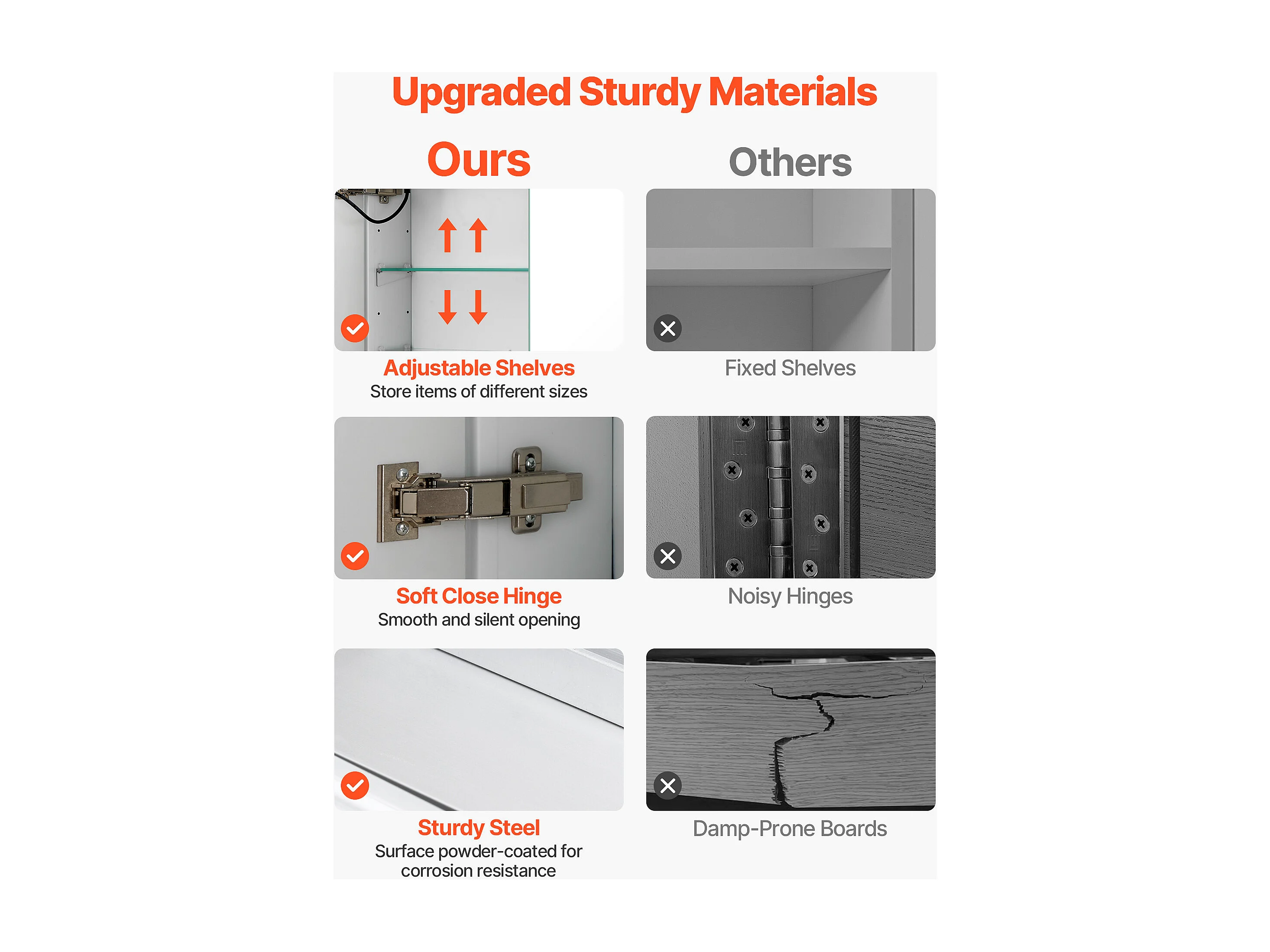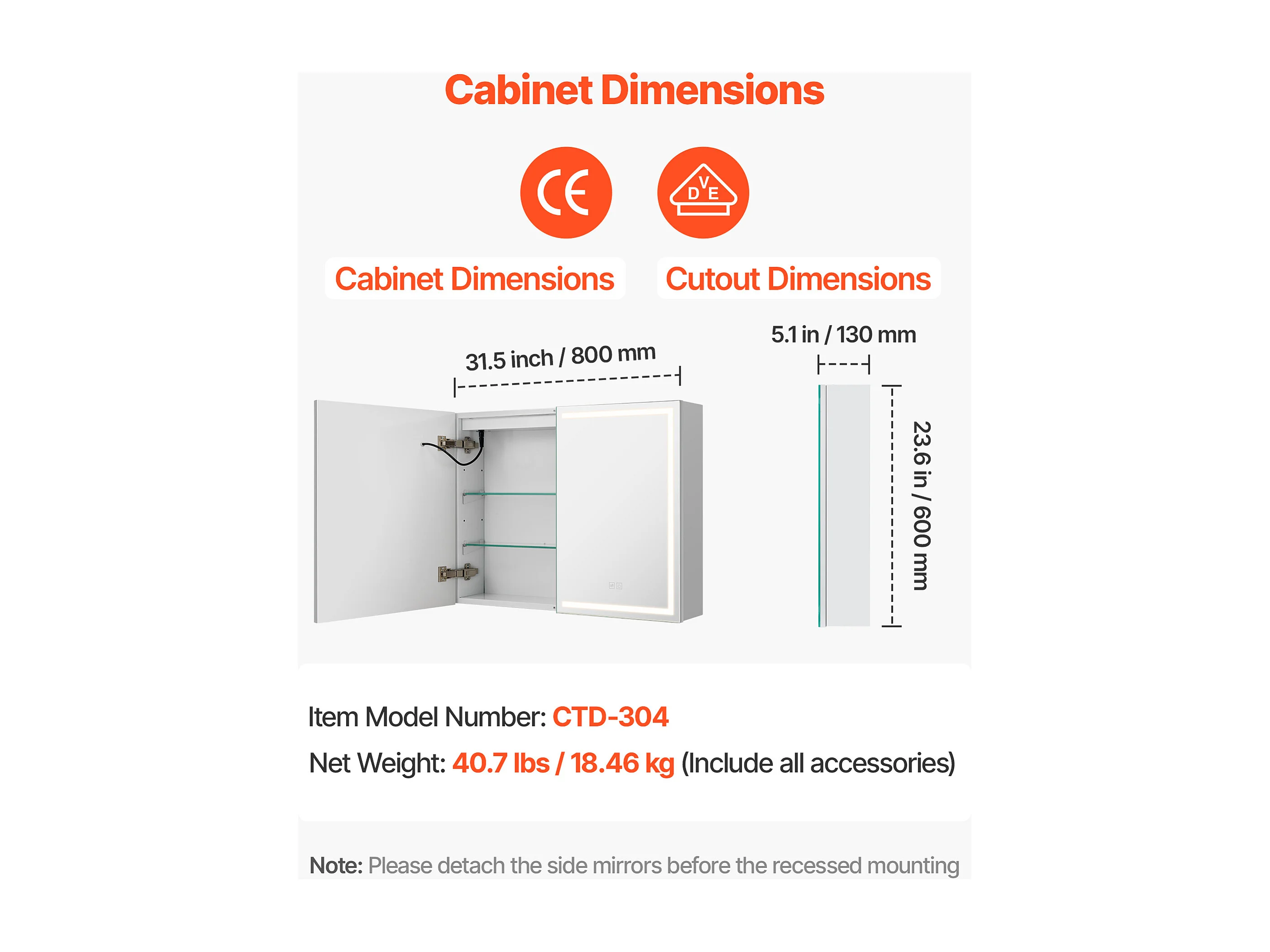 Armadio da Parete per Bagno SucceBuy Armadietto da Bagno con Specchio HD e LED a 3 Colori con Intensità Regolabile, Prese e Porte USB, 60x80 cm