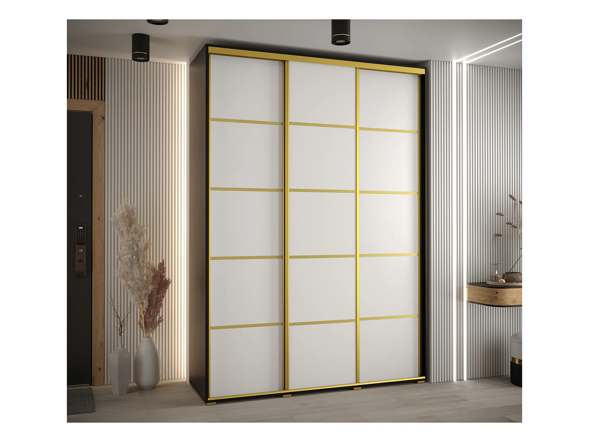 Dimensioni: altezza: 235,2 cm, larghezza: 180 cm, profondità: 45 cm. Maniglie in acciaio disponibili in tre colori: nero, oro e argento. Le spazzole per la polvere sono incluse nel kit. Scelta del tipo di interno al momento del montaggio: versione 1 - un vano lungo, una barra di sospensione, versione 2 - due vani corti, due barre di sospensione.