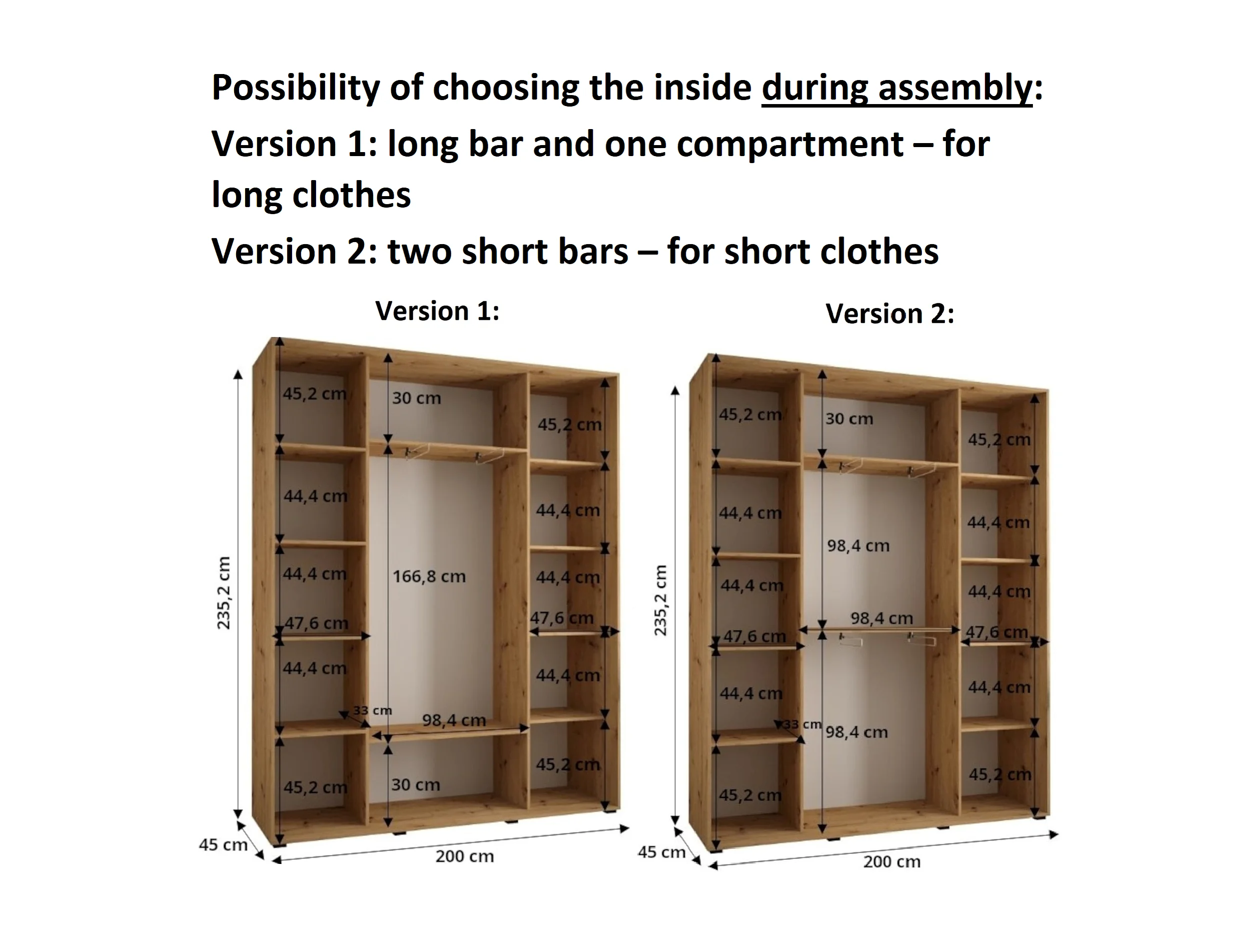 ARMADIO DAVOS 4 AD ANTESCORREVOLI 235,2/200/45 3 porte (Bianco/Artisan/Nero)