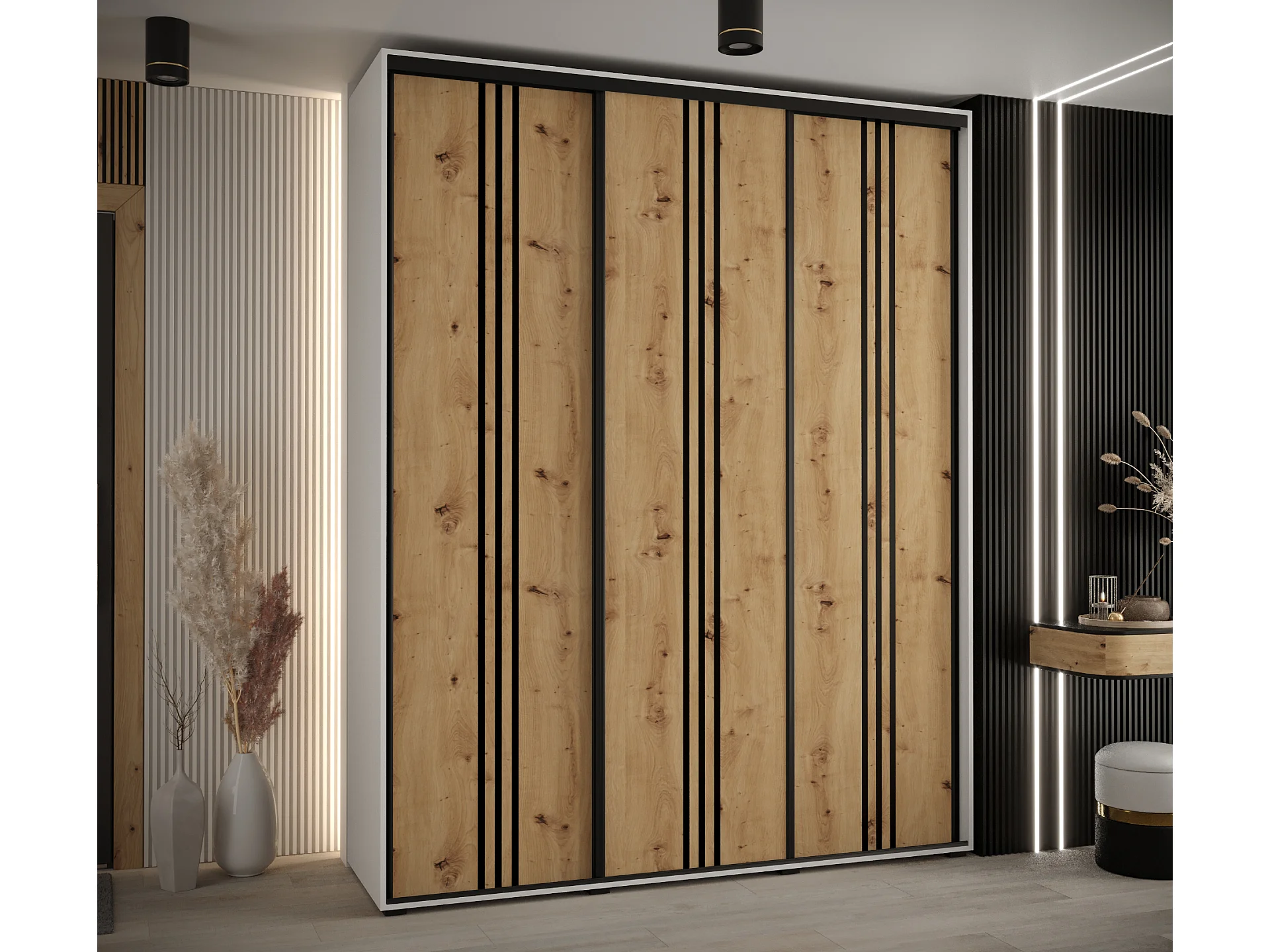 Dimensioni: altezza: 235,2 cm, larghezza: 190 cm, profondità: 45 cm. Maniglie in acciaio disponibili in tre colori: nero, oro e argento. Le spazzole per la polvere sono incluse nel kit. Scelta del tipo di interno al momento del montaggio: versione 1 - un vano lungo, una barra di sospensione, versione 2 - due vani corti, due barre di sospensione.