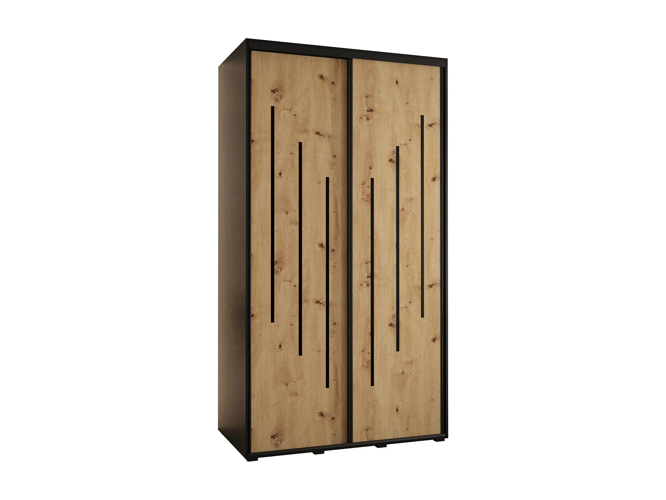 Dimensioni: altezza: 235,2 cm, larghezza: 140 cm, profondità: 45 cm. Maniglie in acciaio disponibili in tre colori: nero, oro e argento. Le spazzole per la polvere sono incluse nel kit. Scelta del tipo di interno al momento del montaggio: versione 1 - un vano lungo, una barra di sospensione, versione 2 - due vani corti, due barre di sospensione.
