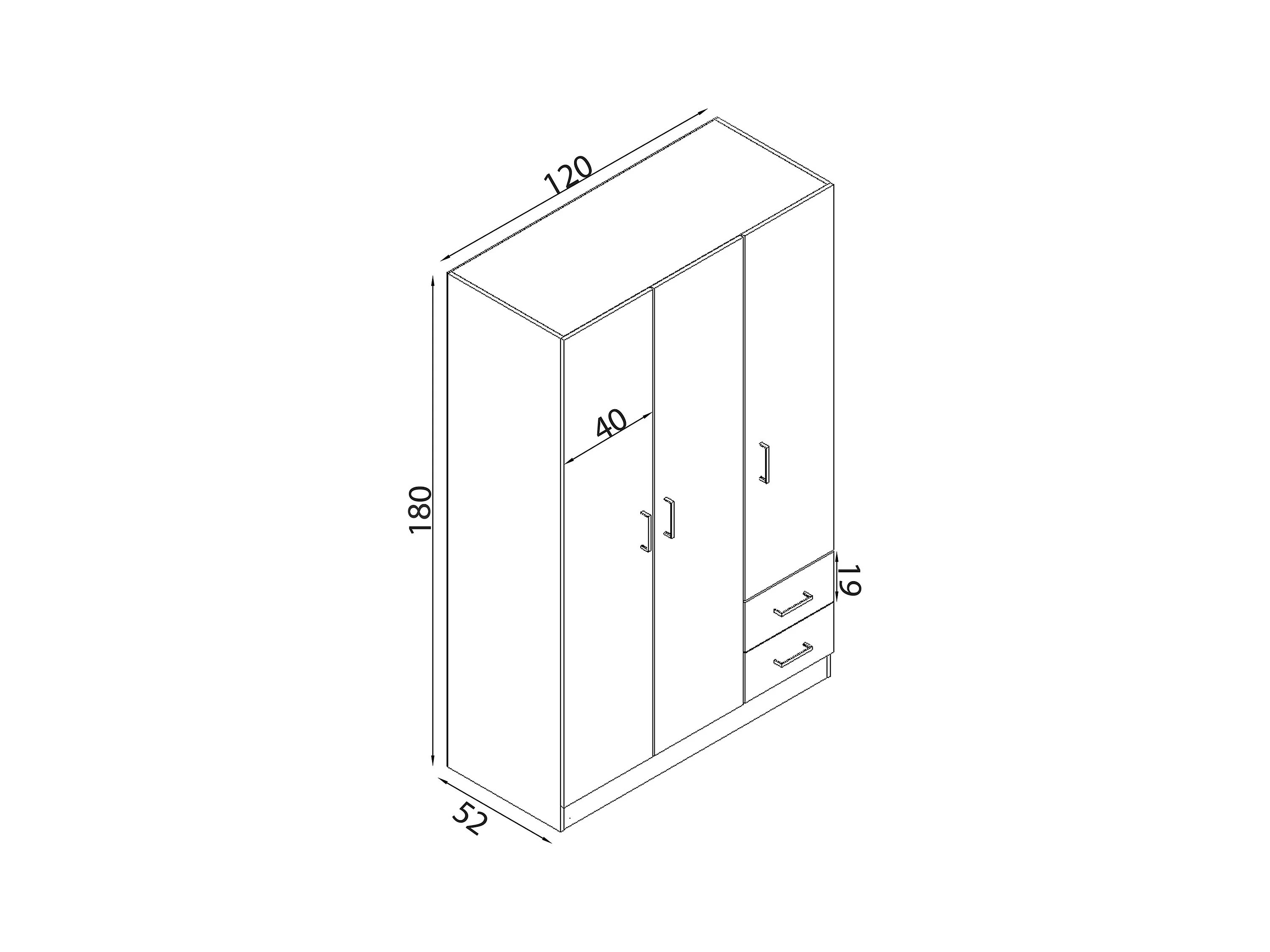 MilaniHome.it - armadio di design con 3 ante 2 cassetti di design moderno contemporaneo cm 120 x 52 x 190 hdi coloreQuercia Chiaro