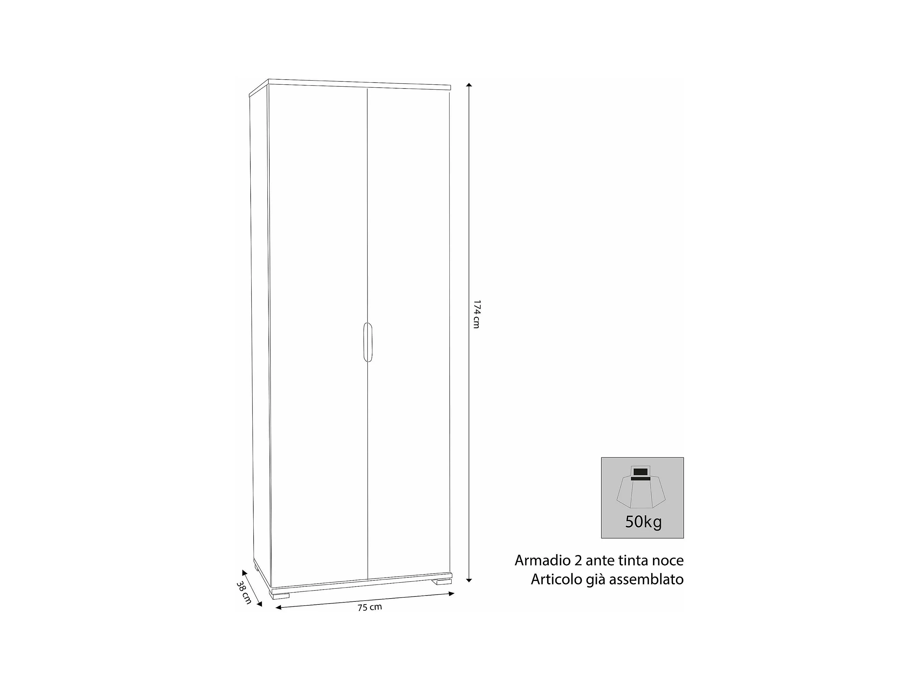MilaniHome.it - armadio due ante 180 per soggiorno cucina bagno fatto in Italia cm 75x38x174 hdi coloreRovere grigio