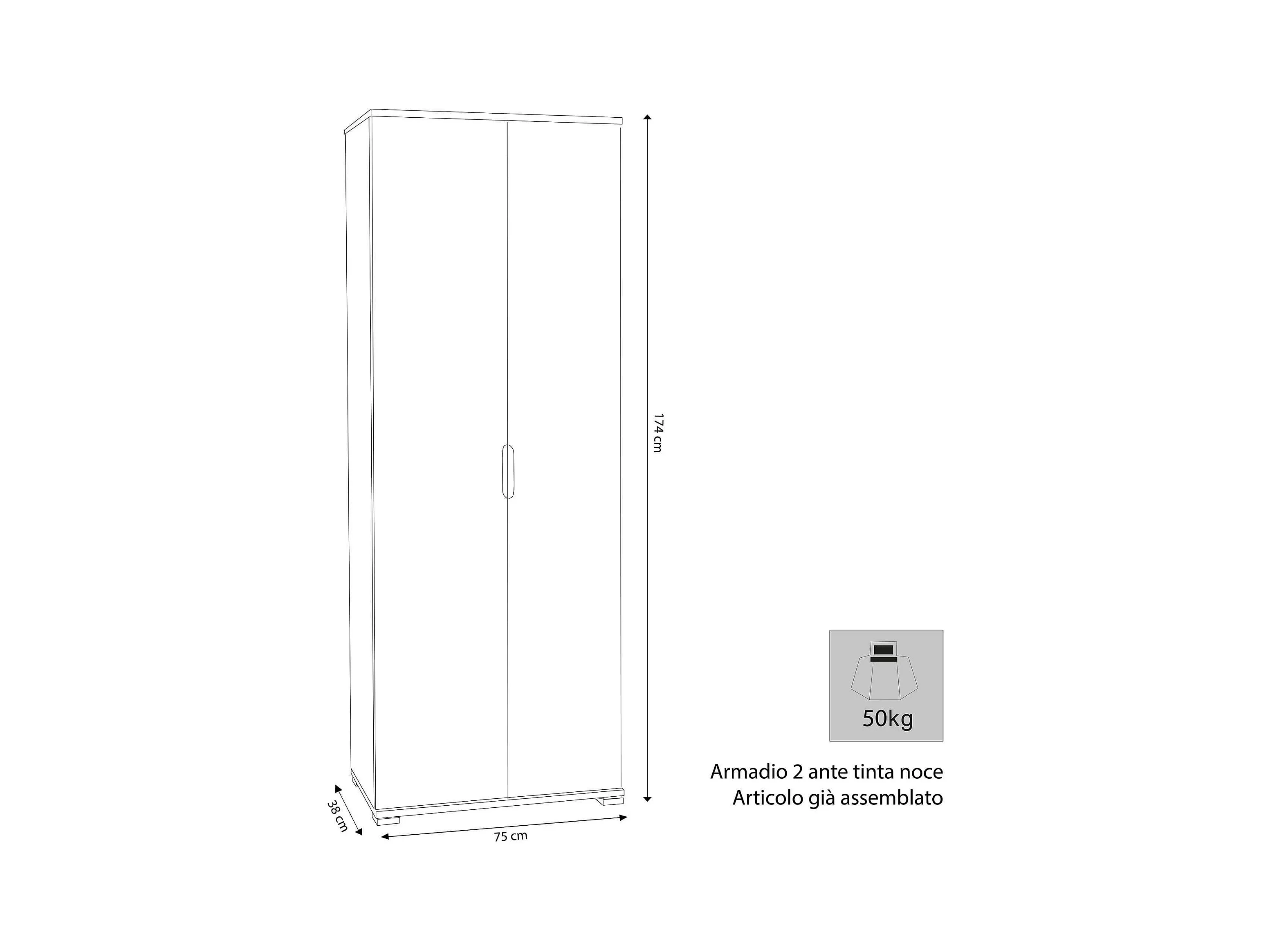 MilaniHome.it - armadio due ante 180 per soggiorno cucina bagno fatto in Italia cm 75x38x174 hdi coloreMarrone