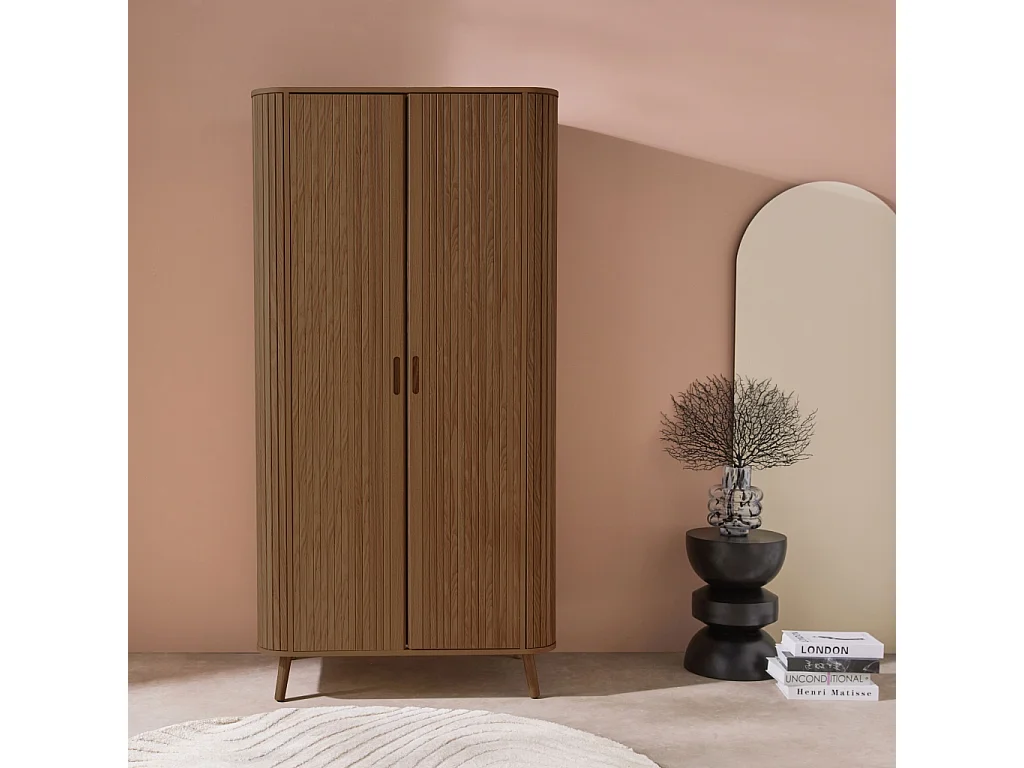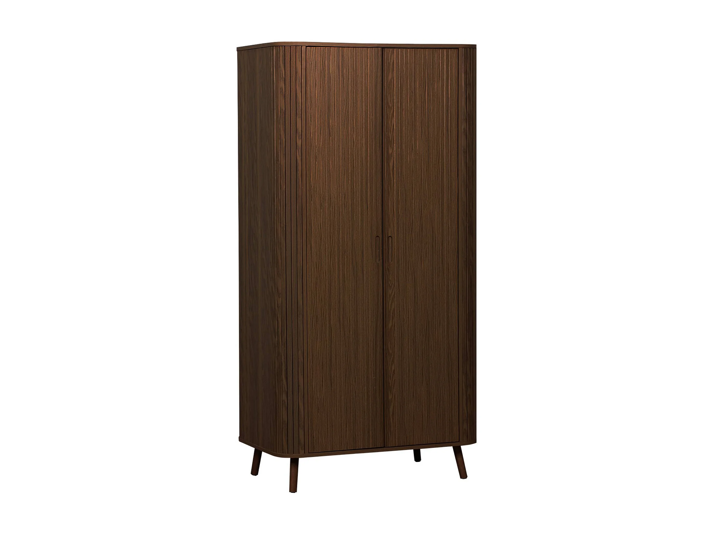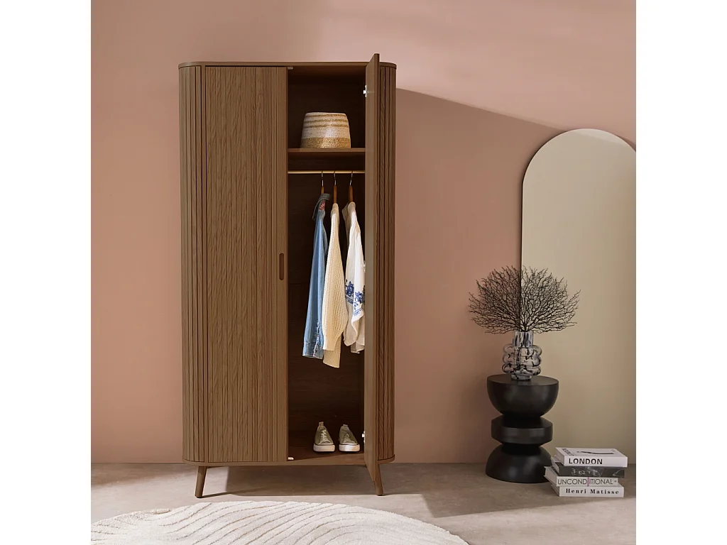 Armadio effetto legno scanalato con mensola e guardaroba, noce