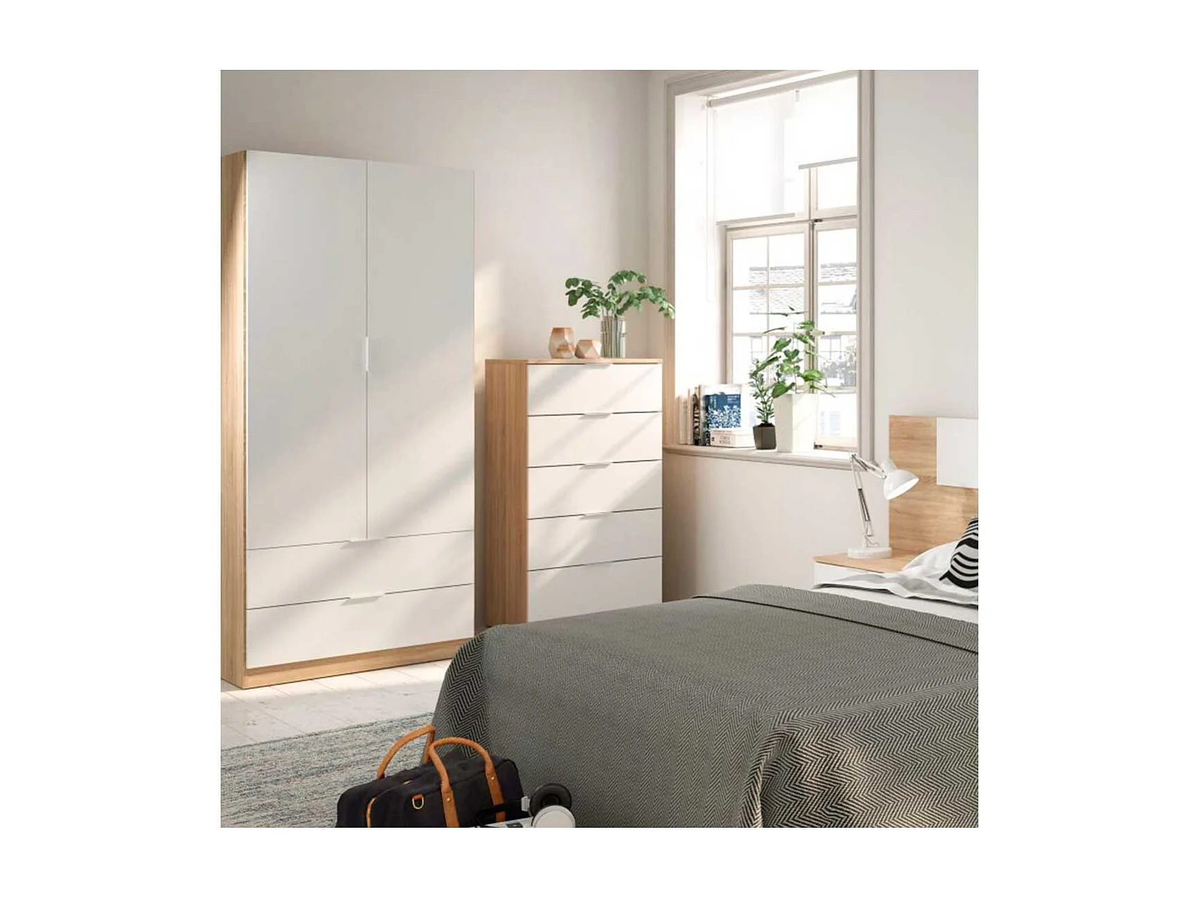 Armadio Giovanile con 2 Ante e 2 Cassetti, Bianco Artik e Rovere, 180x81,5x52 cm