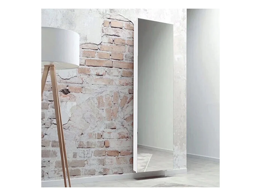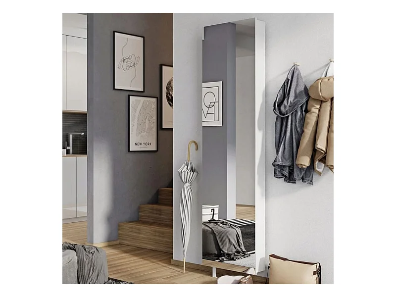 Scarpiera Datura, Mobile multiuso da ingresso con anta a specchio , Armadio moderno portascarpe a 7 ripiani, 100% Made in Italy, 50x32hx182 cm, Bianco
