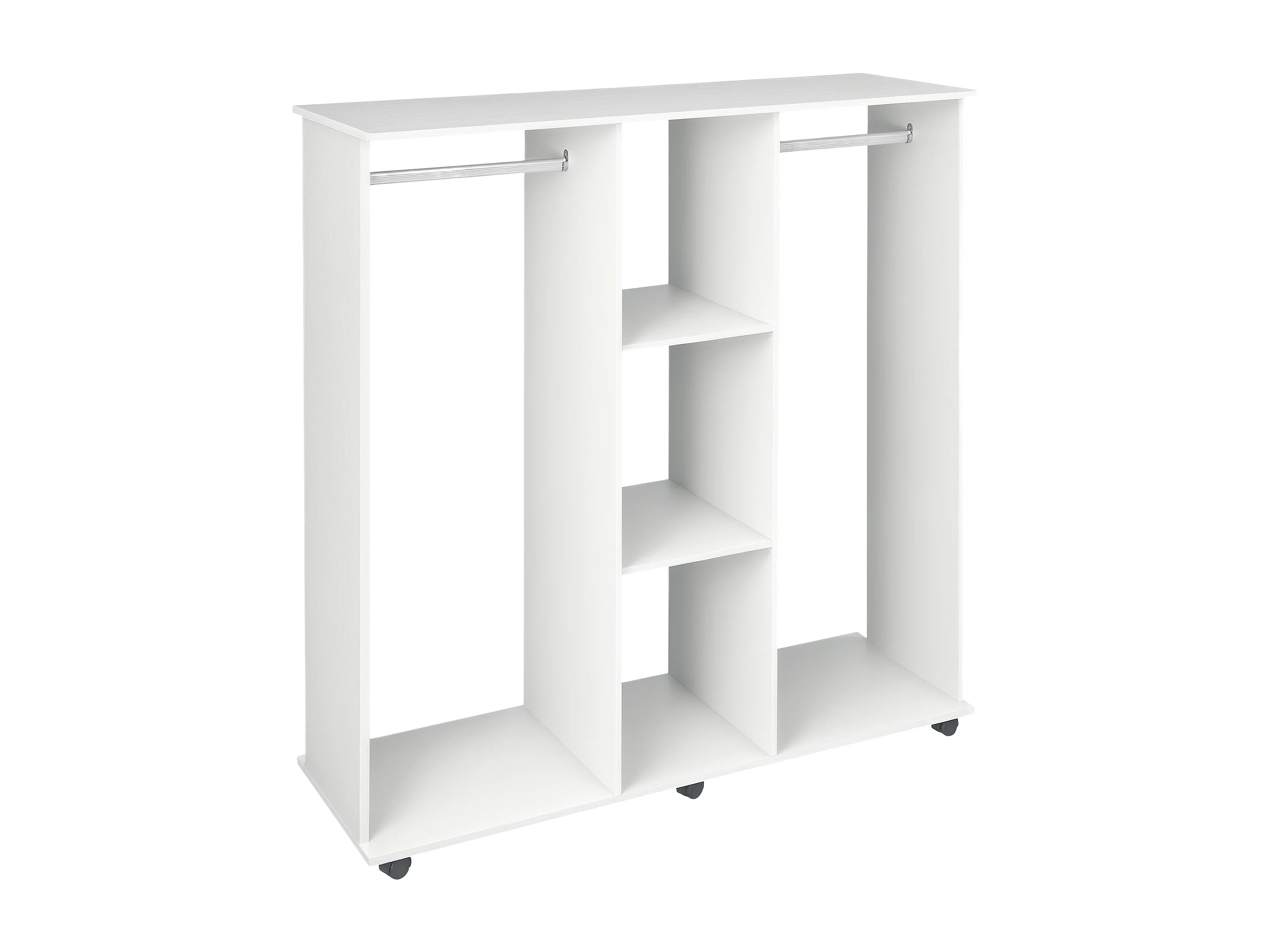 Armadio guardaroba a rotelle con 2 barre e 3 ripiani bianco