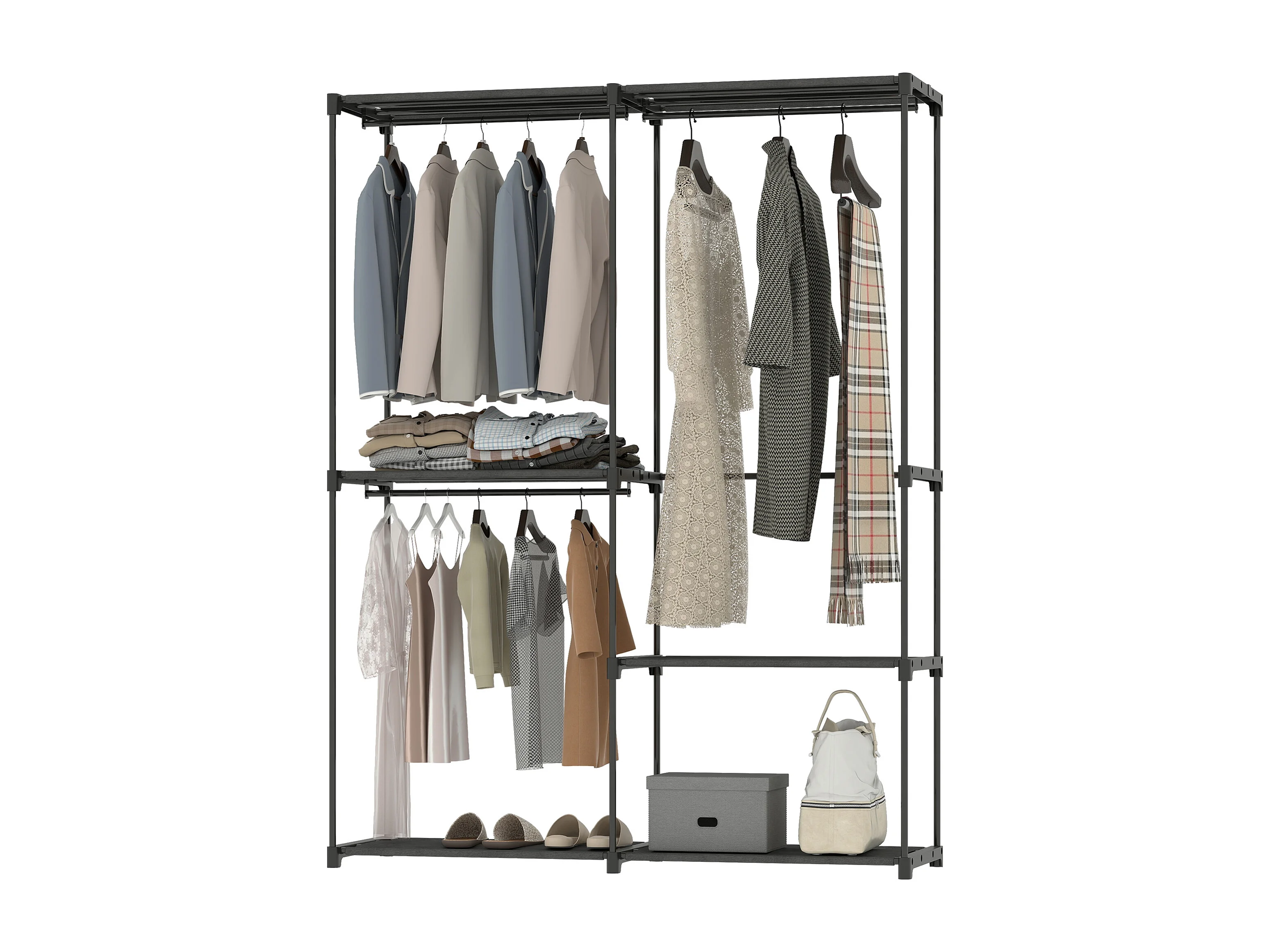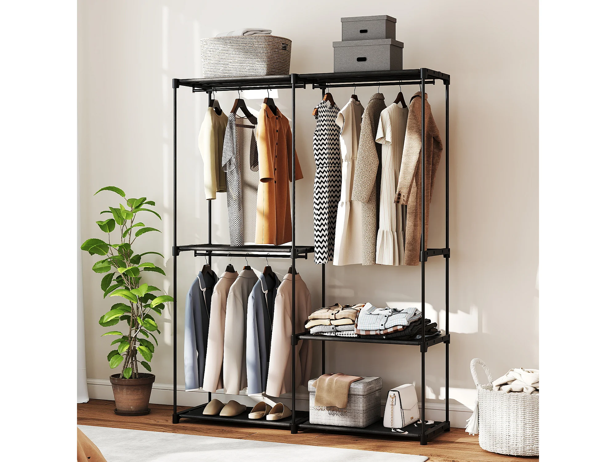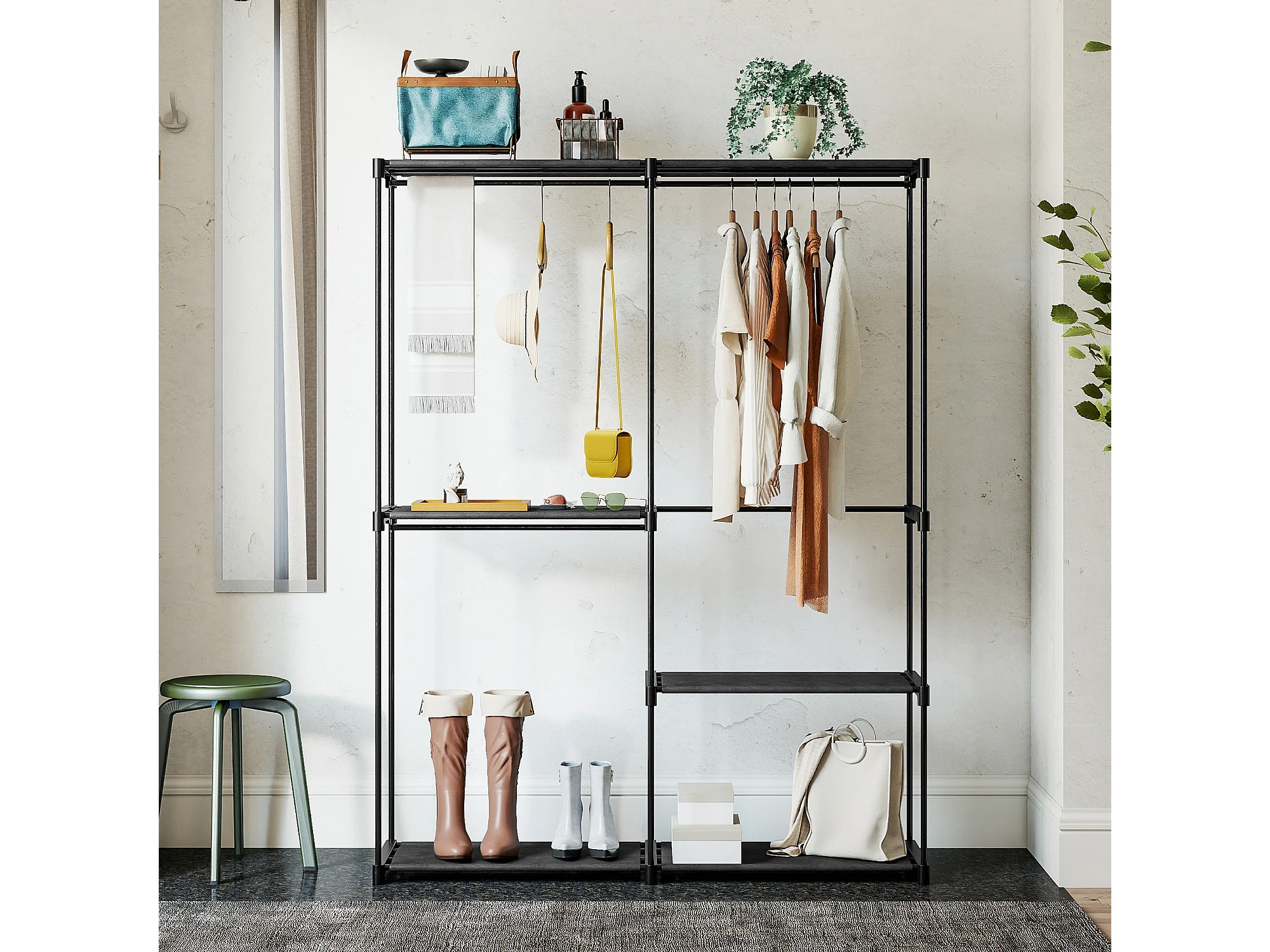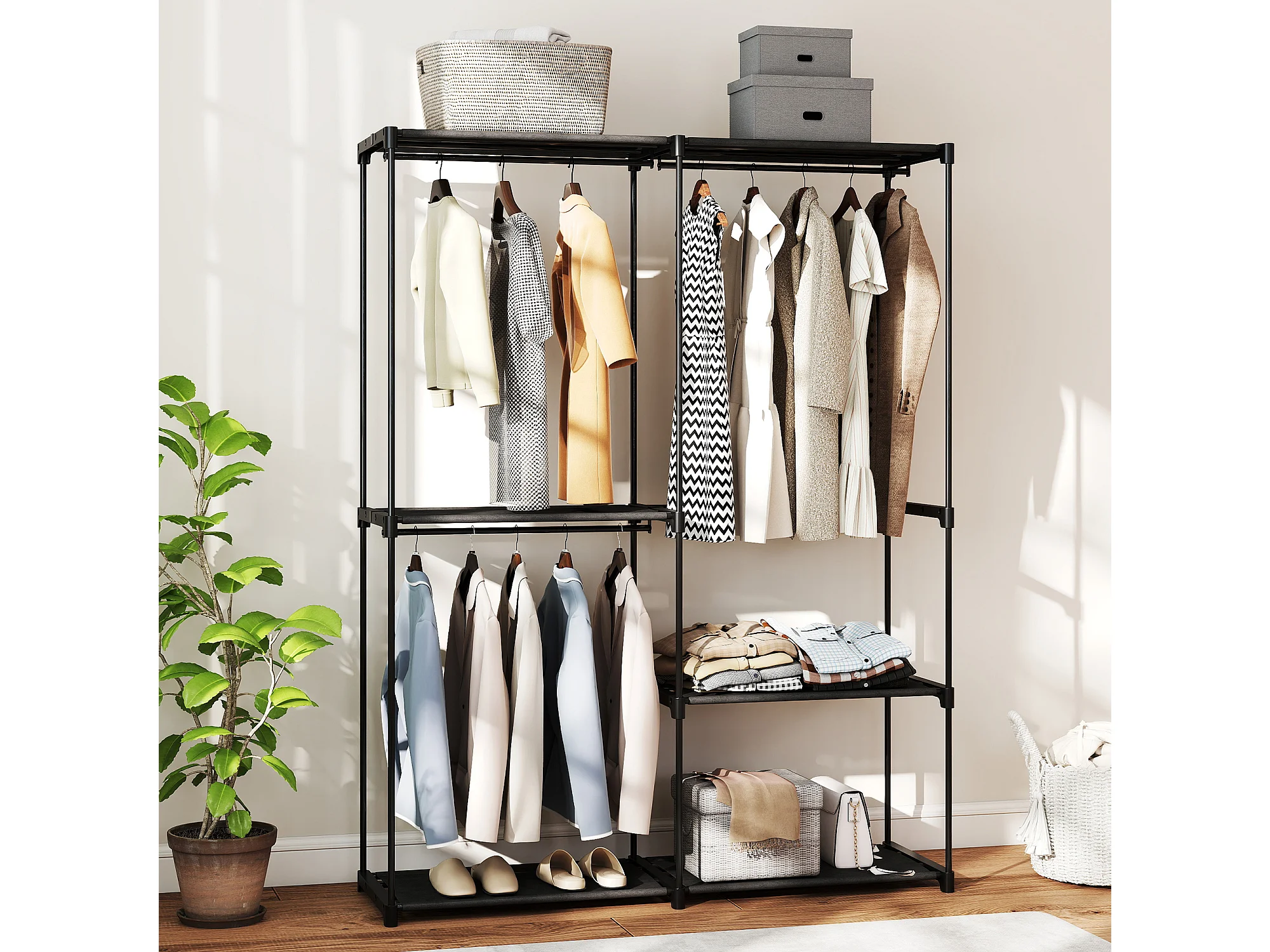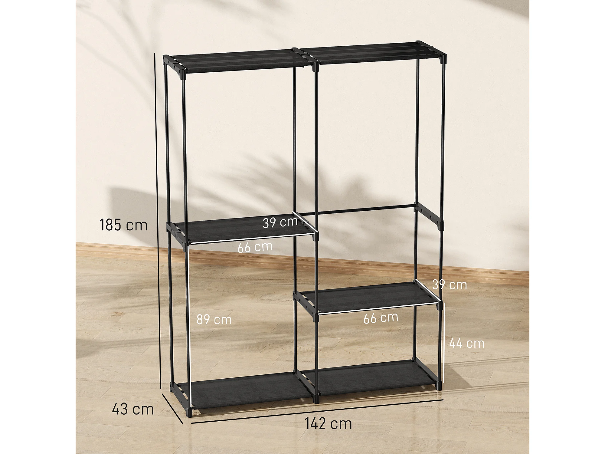 Armadio guardaroba portatile in tessuto nero con 2 aste e 6 ripiani