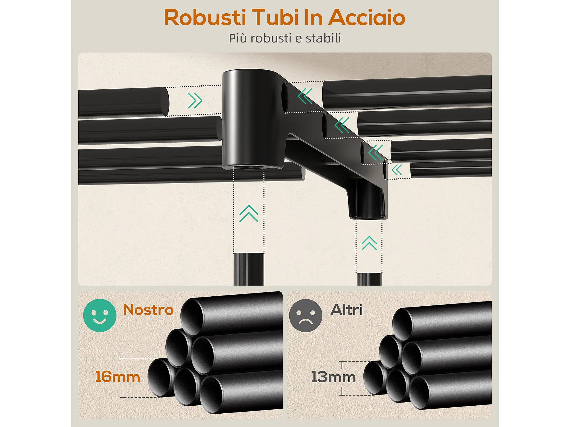 Armadio guardaroba portatile con 6 ripiani e barra appendiabiti nero