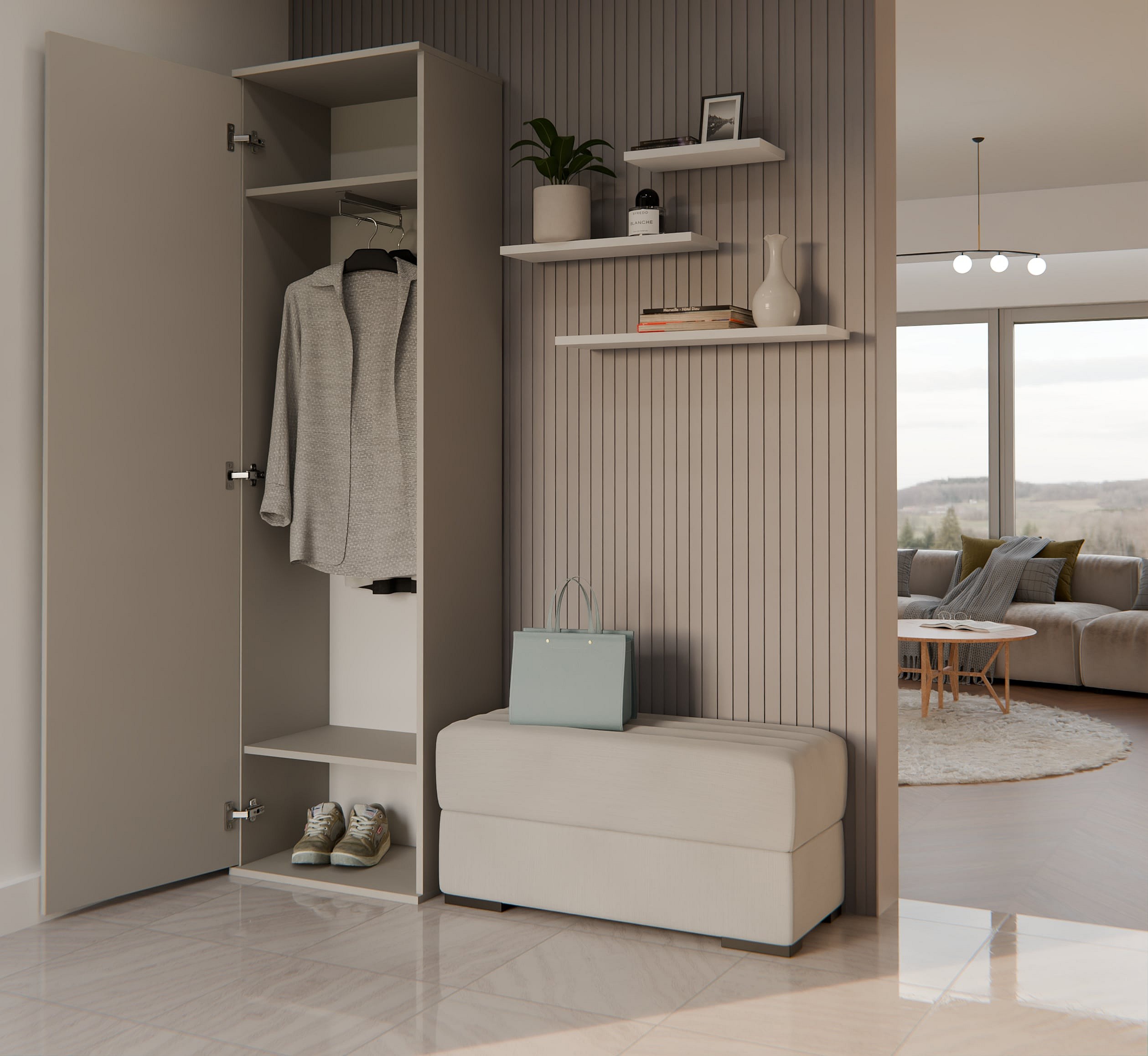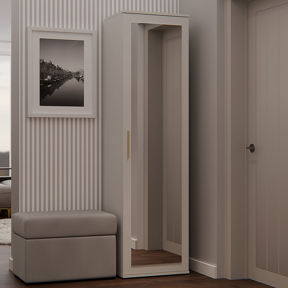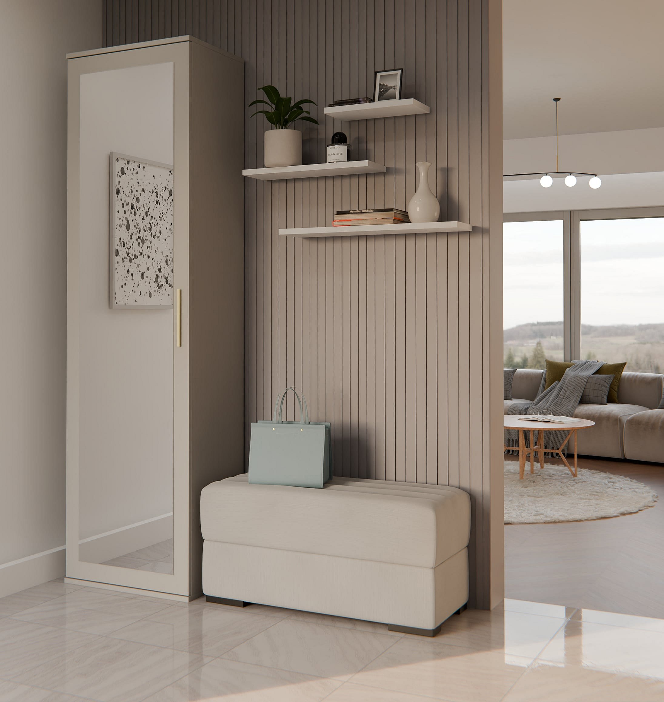Guardaroba moderna 90 cm armadio dingresso con specchio ripiani e appendiabiti opaco beige cashmere
