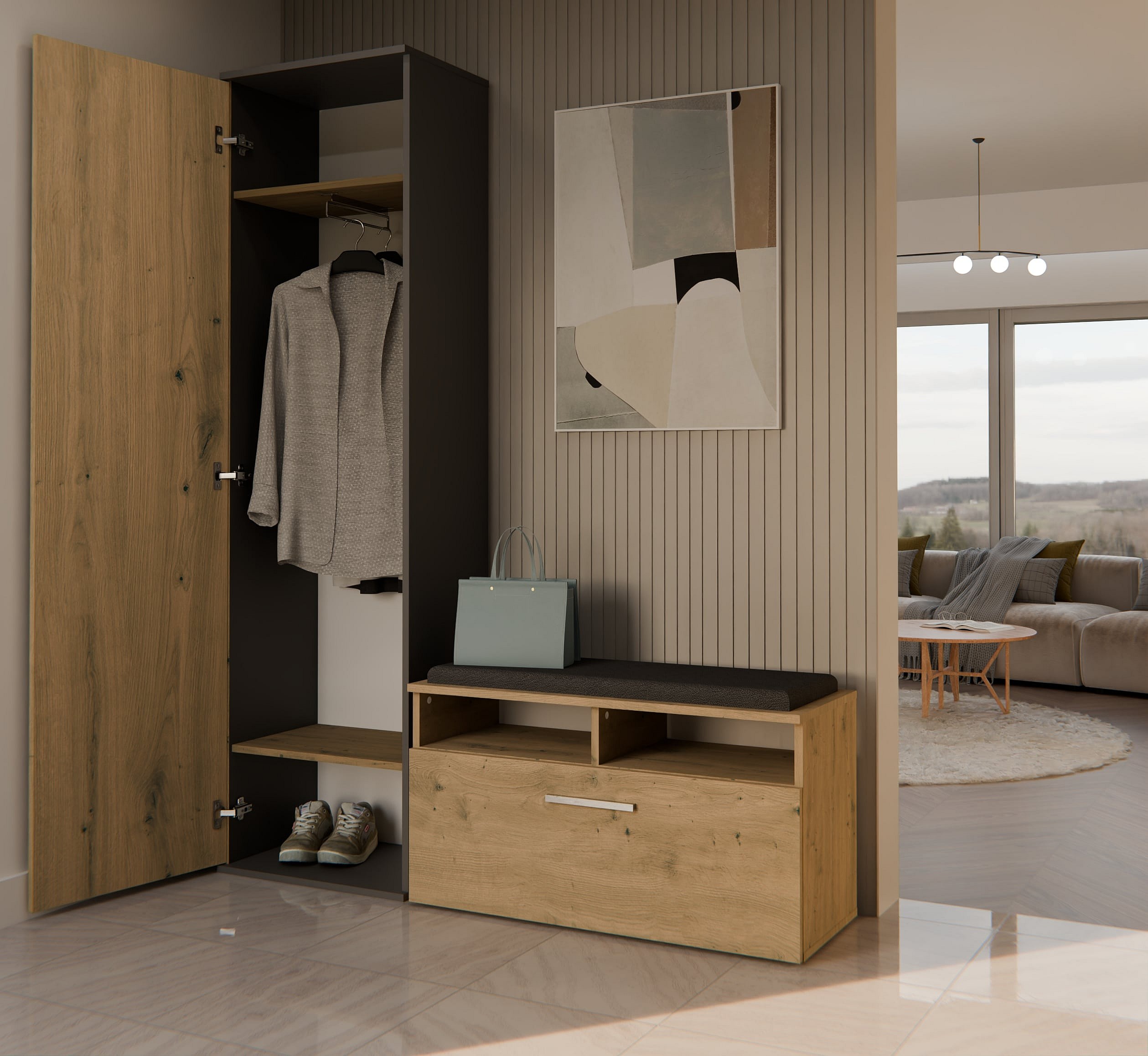 Armadio guardaroba per ingresso rovere e antracite MIT4