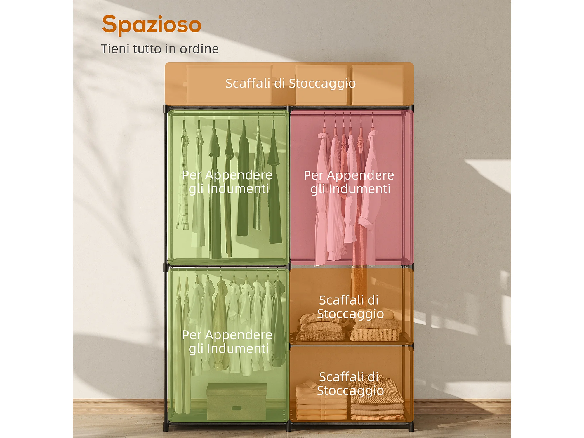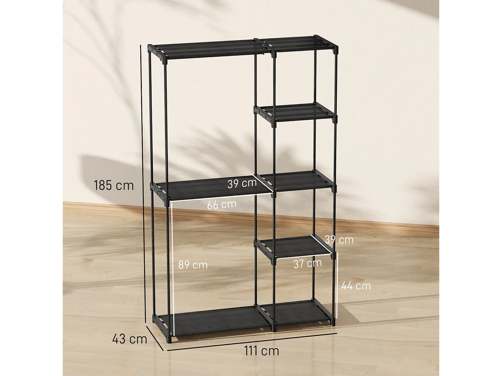 Armadio guardaroba portatile con 6 ripiani e barra appendiabiti nero