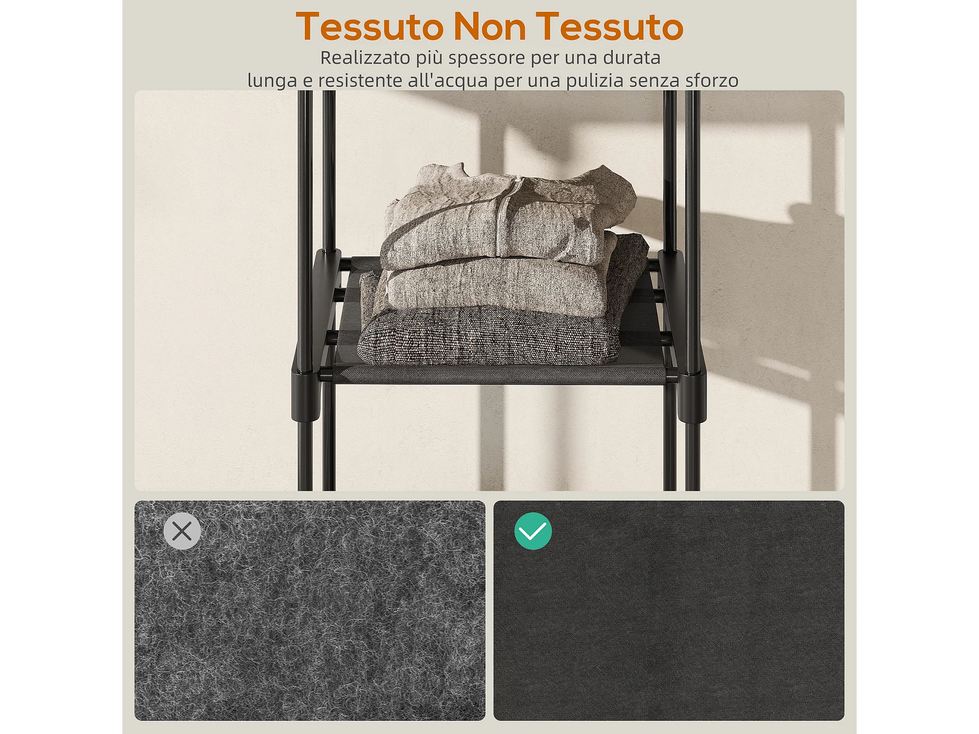 Armadio guardaroba in tessuto nero con 2 aste e 4 ripiani