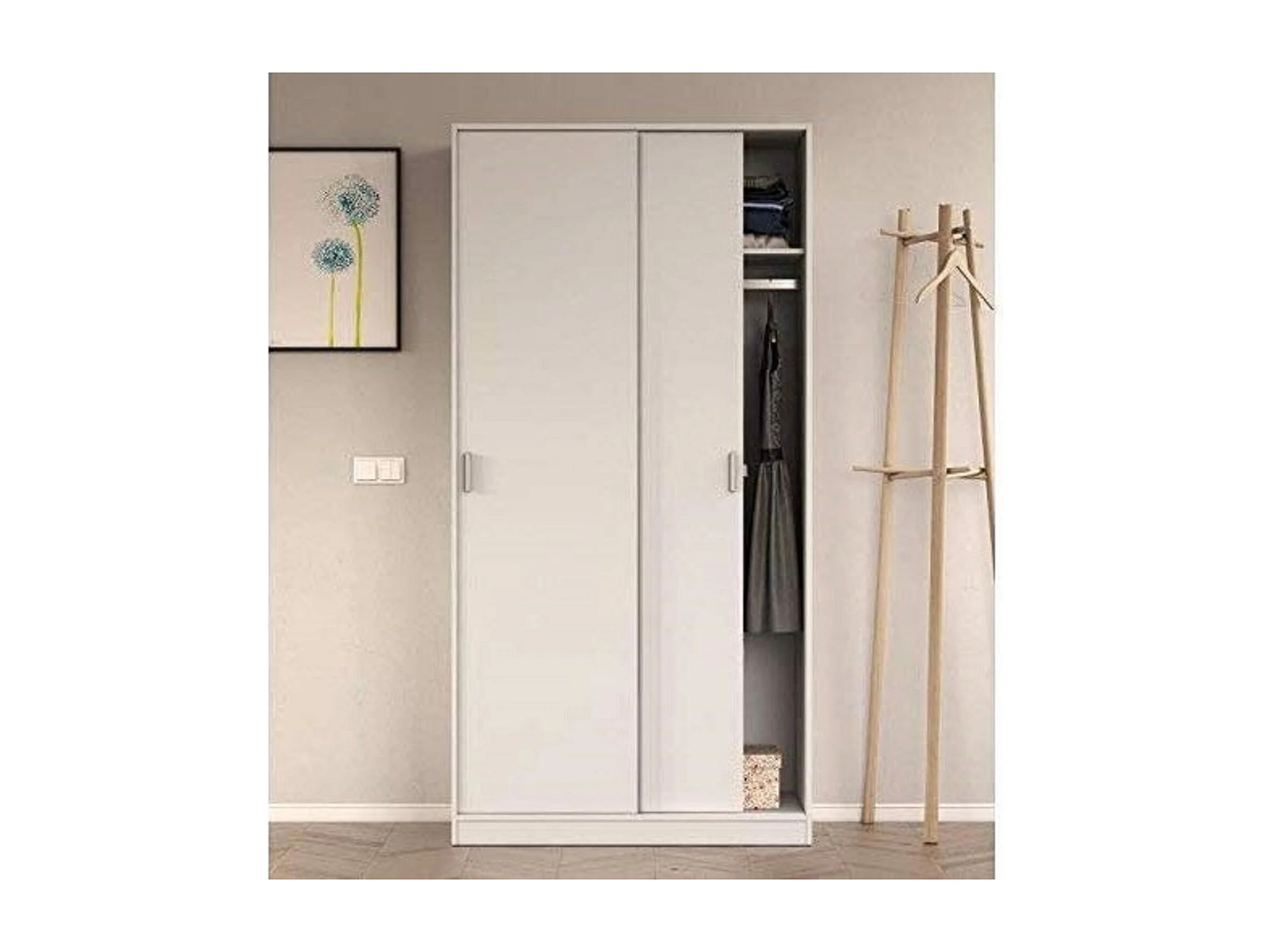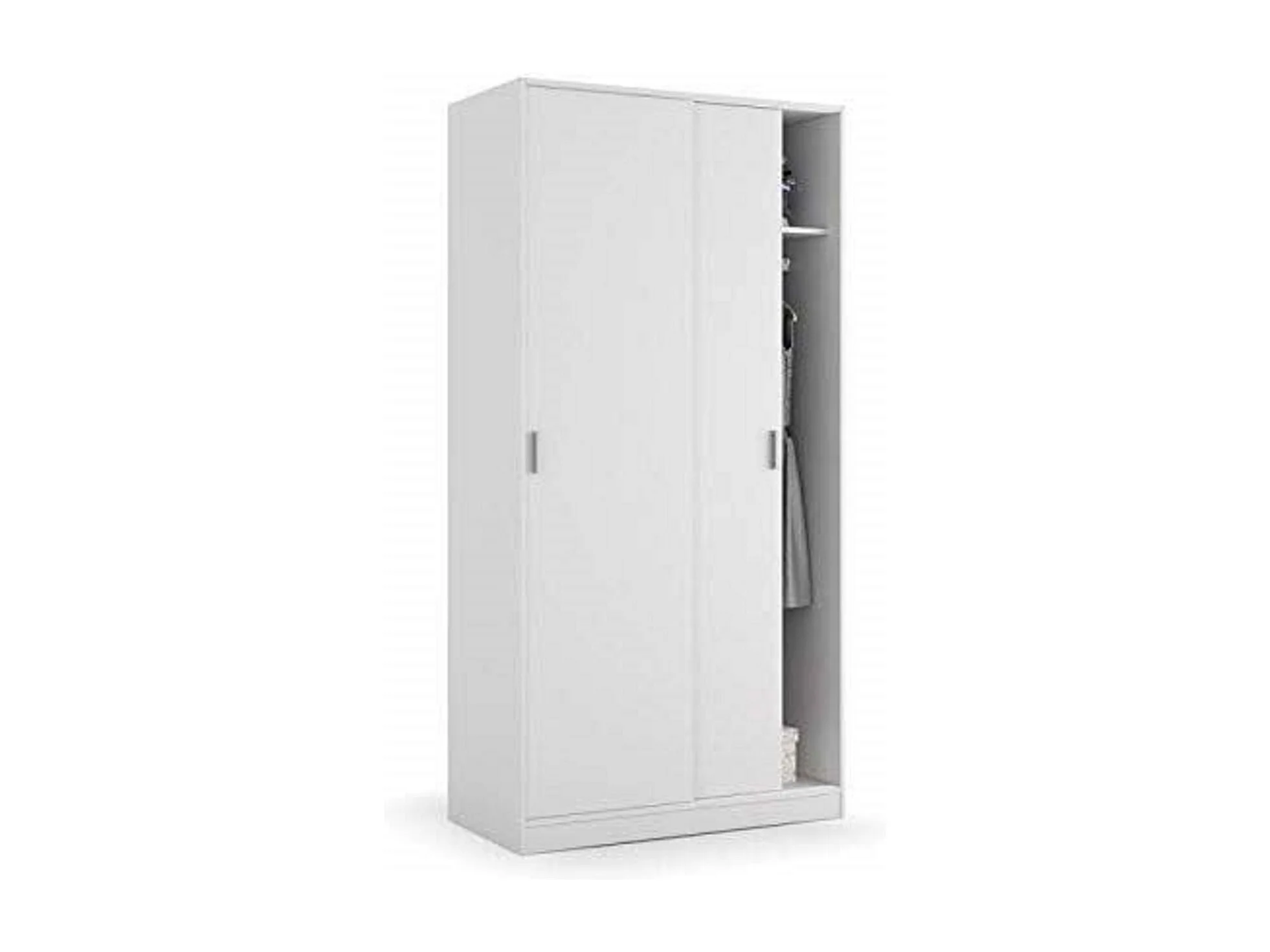 Armadio Guardaroba Vestiti 2 Ante Scorrevoli Ripiano Appendiabiti Salvaspazio Maniglie In Metallo Camera Da Letto Stanza Arredo 100x200x50 Cm Bianco