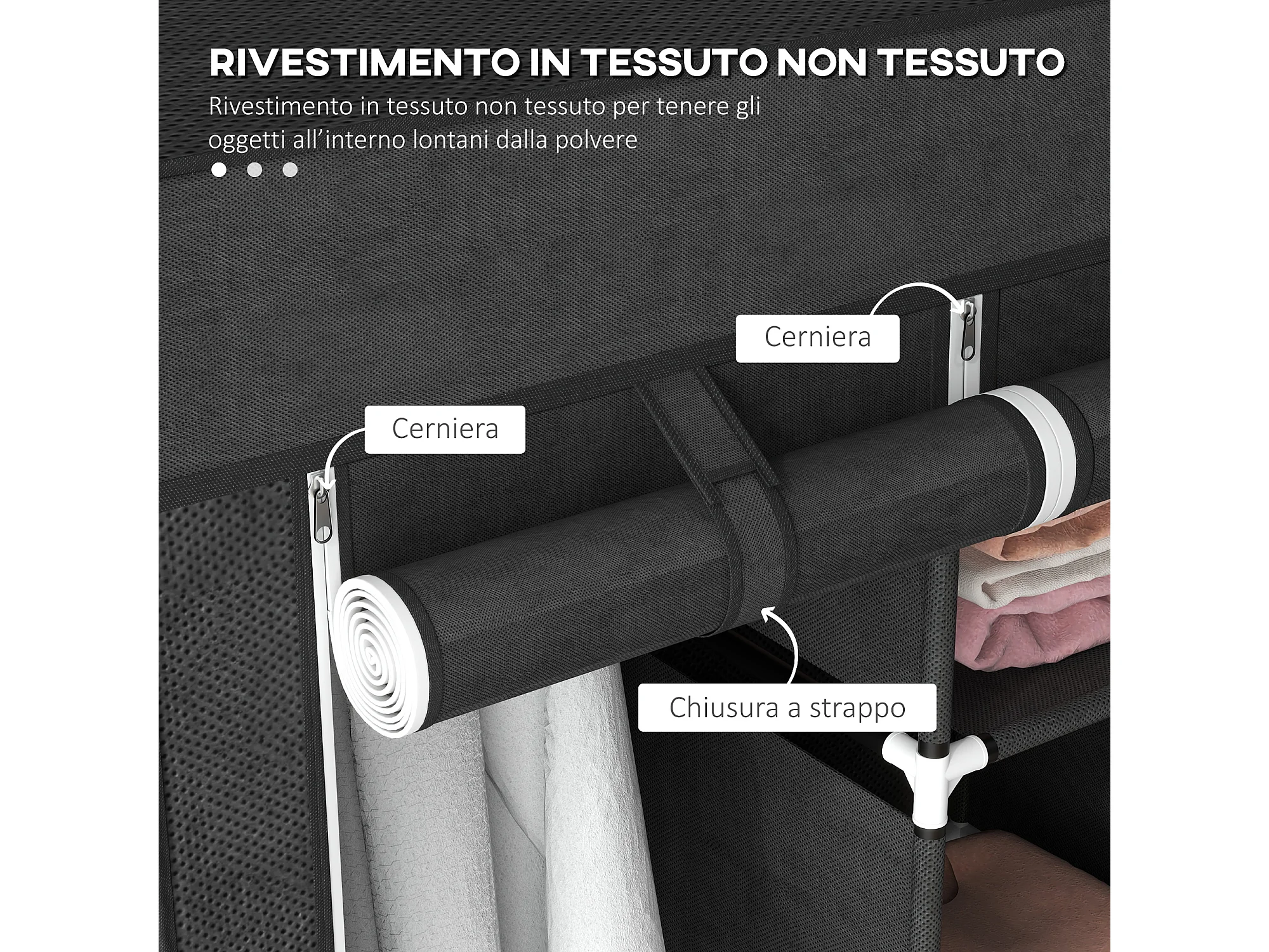 Armadio in tessuto pieghevole salvaspazio in tessuto nero