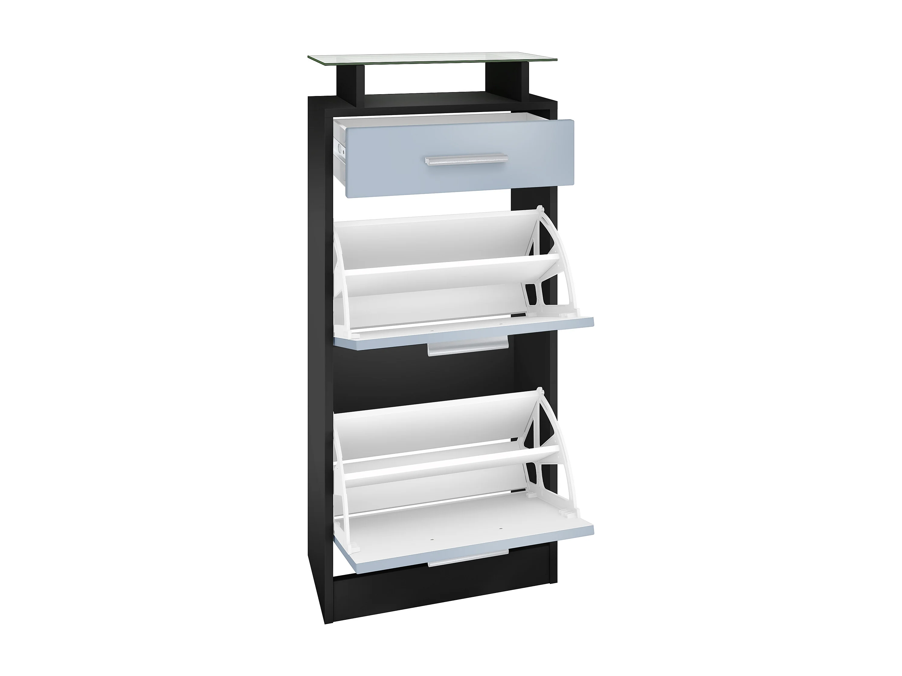 Armadio Kioto, struttura in bianco opaco / frontale in nero lucido