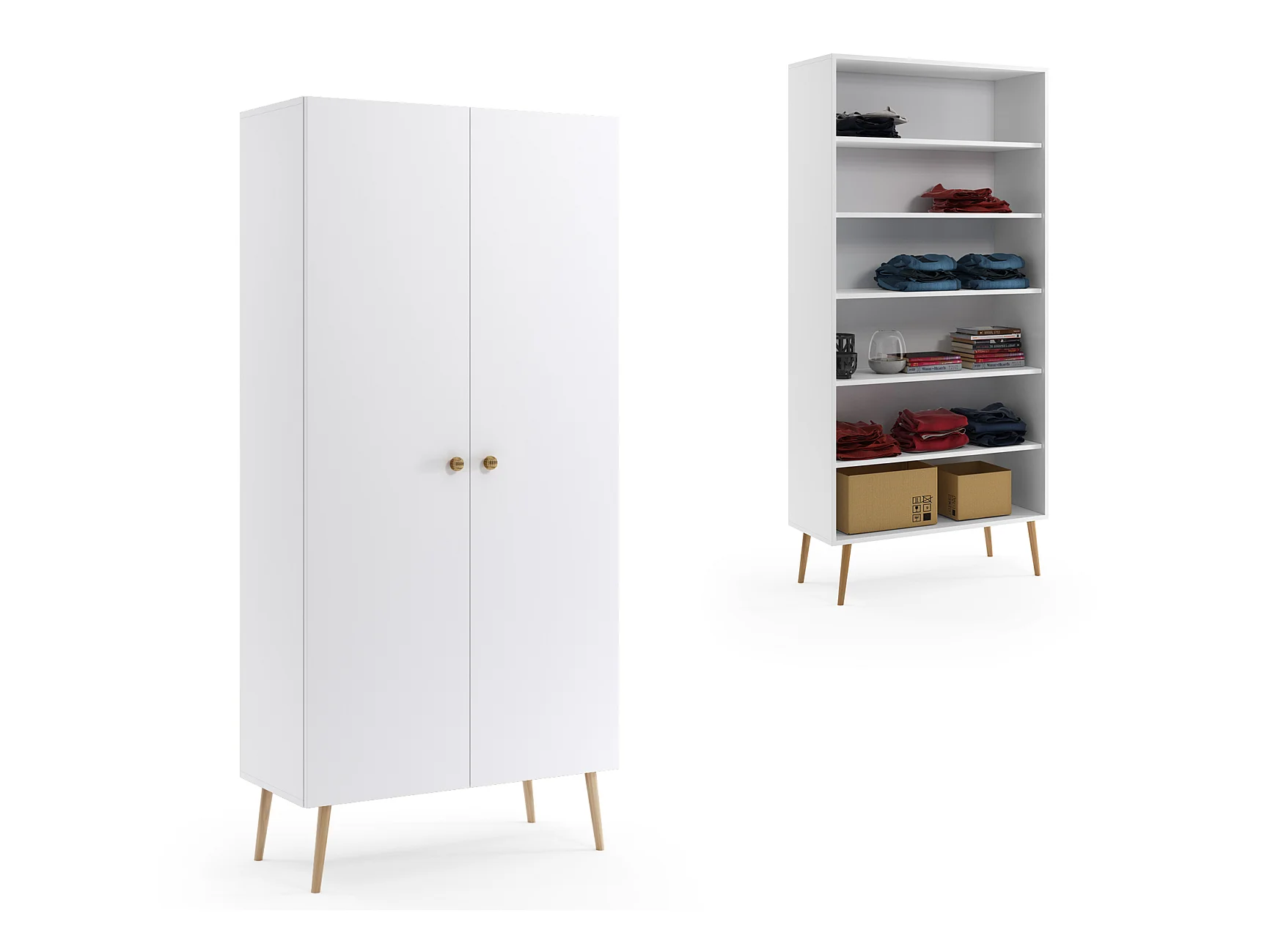 Armadio MALIBO 87 cm - 2 ante - 5 ripiani - bianco opaco