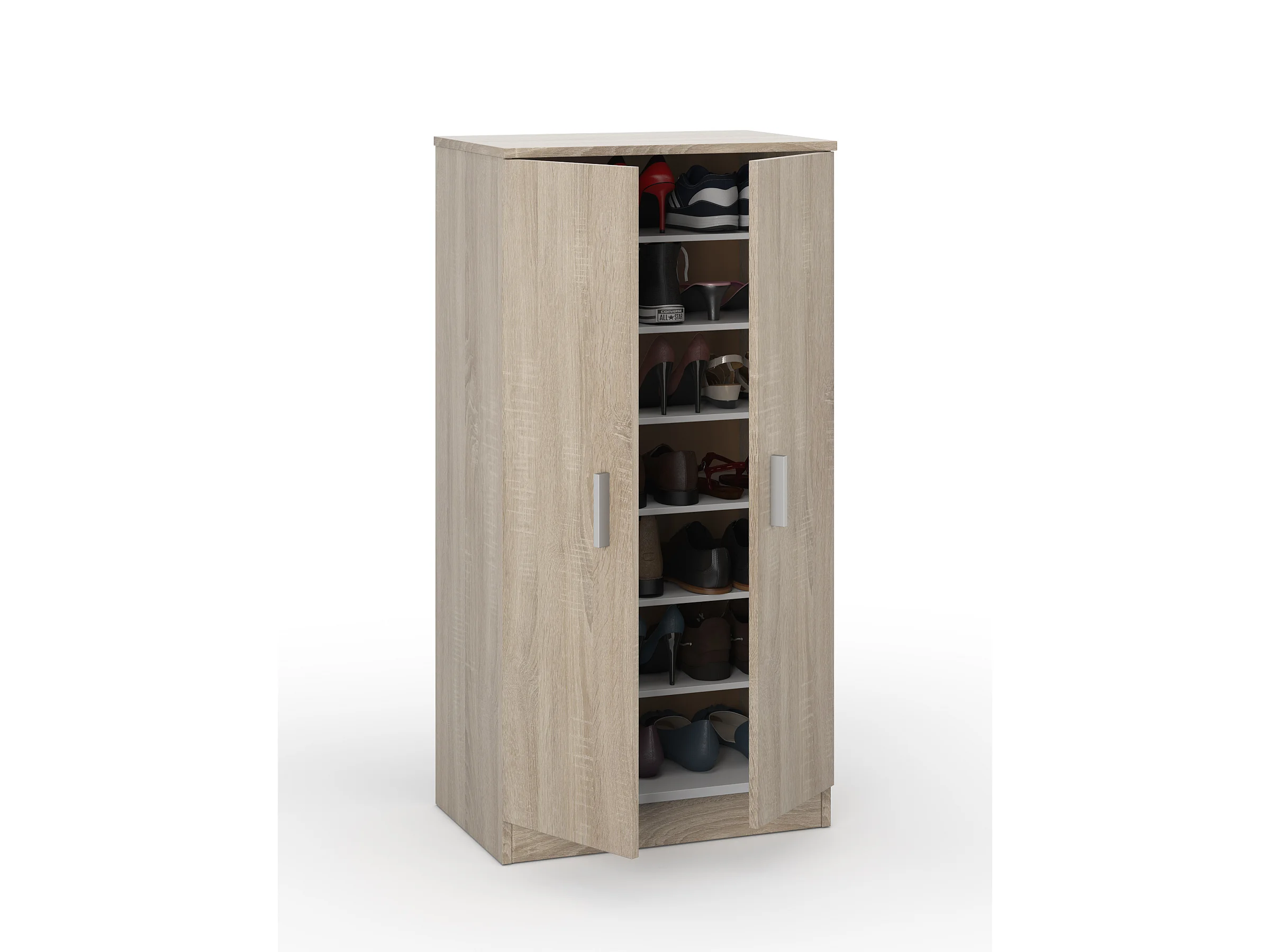 Armadio Mobiletto Portascarpe Bridge Scarpiera in Legno con Sette Ripiani e Due Ante Ingresso Corridioio Arredo Casa Design Minimal 108 x 55 x 36 cm Colore Rovere