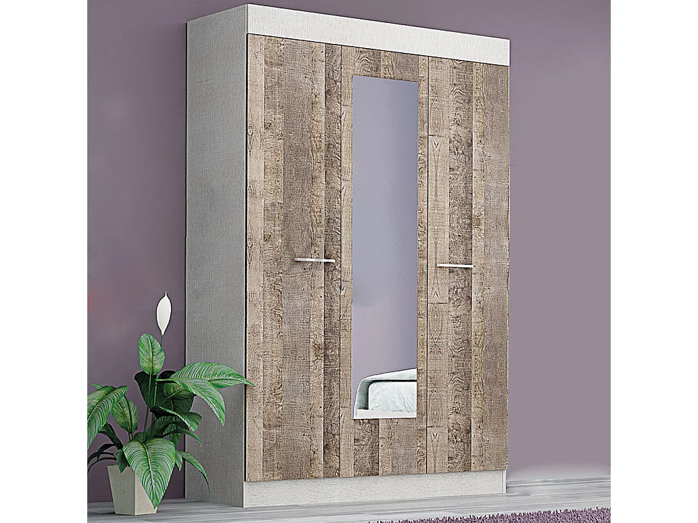 Armadio moderno a 3 ante battenti soft-closing color noce scuro e lino AG13