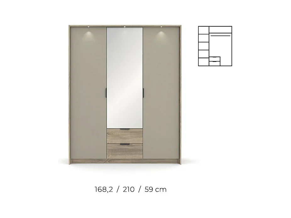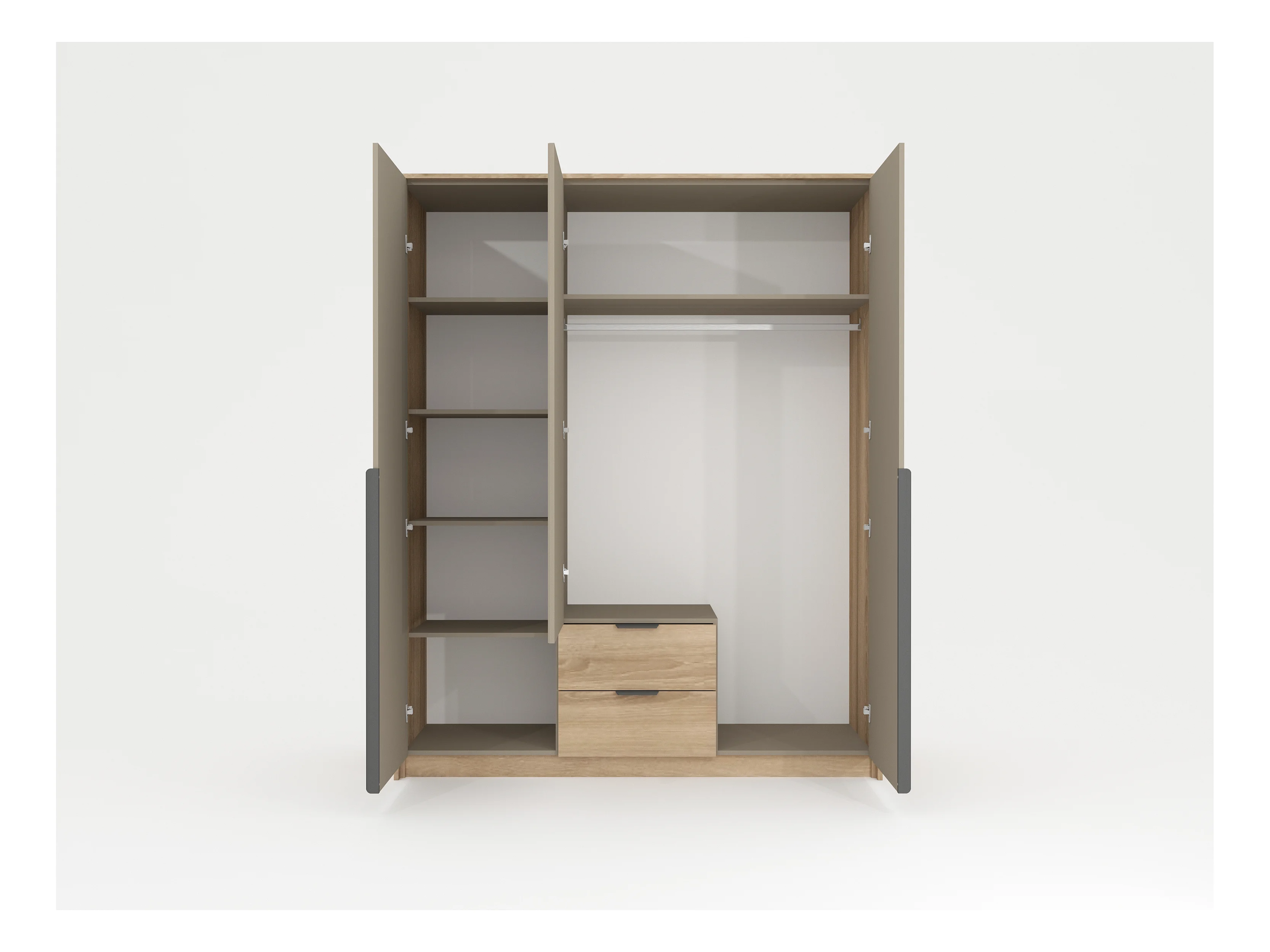 Armadio moderno a 3 ante soft-close in rovere e grigio pietra ALK15