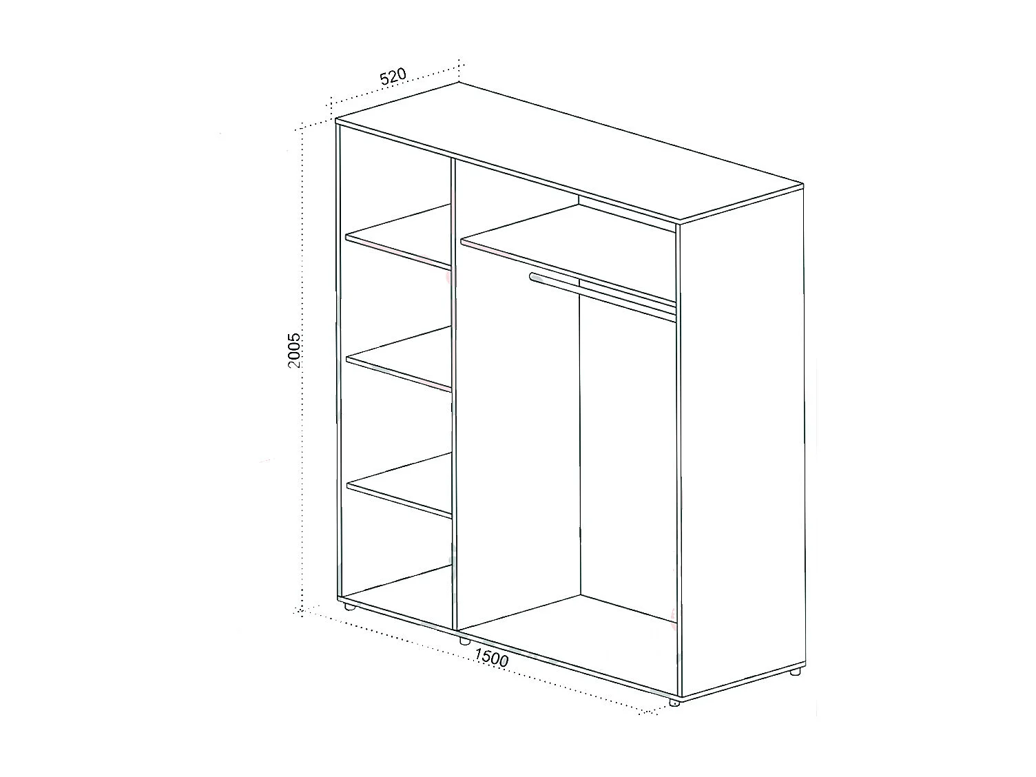 Armadio moderno ad ante battenti 150x200,5x52 cm in bianco lucido e noce AU48