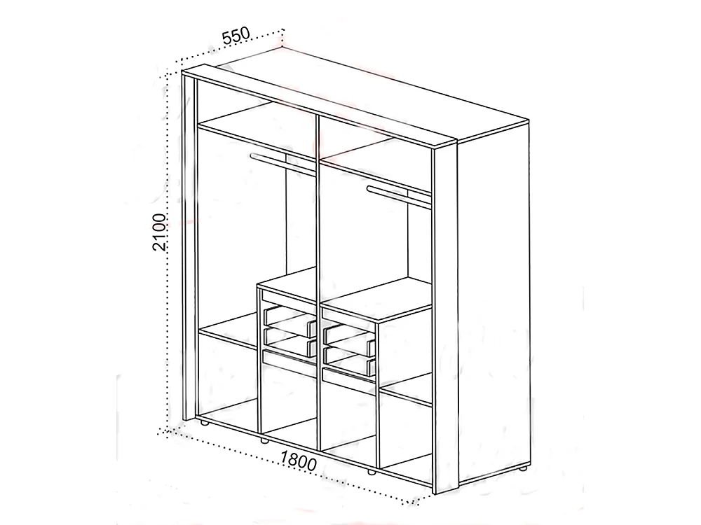 Armadio moderno ad ante battenti e cassetti 180x210 cm beige e noce AU45