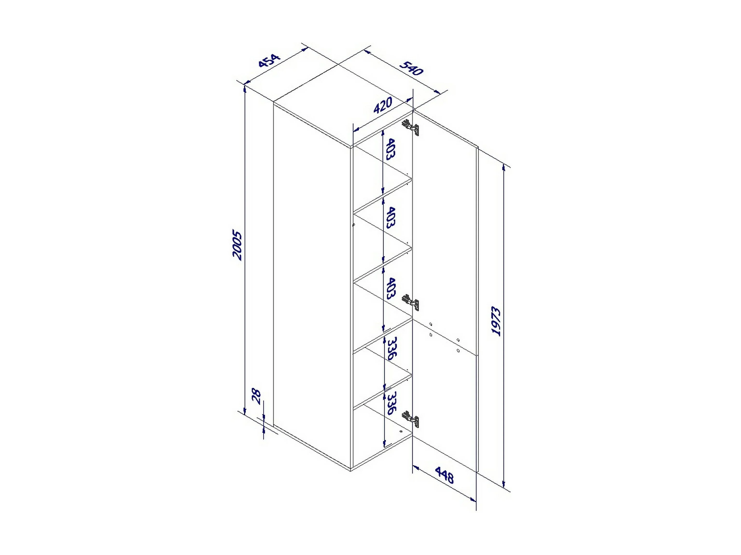 Armadio Multiuso 1 Anta Abrantes, 4 Ripiani, 55.5x198.5h cm Nero