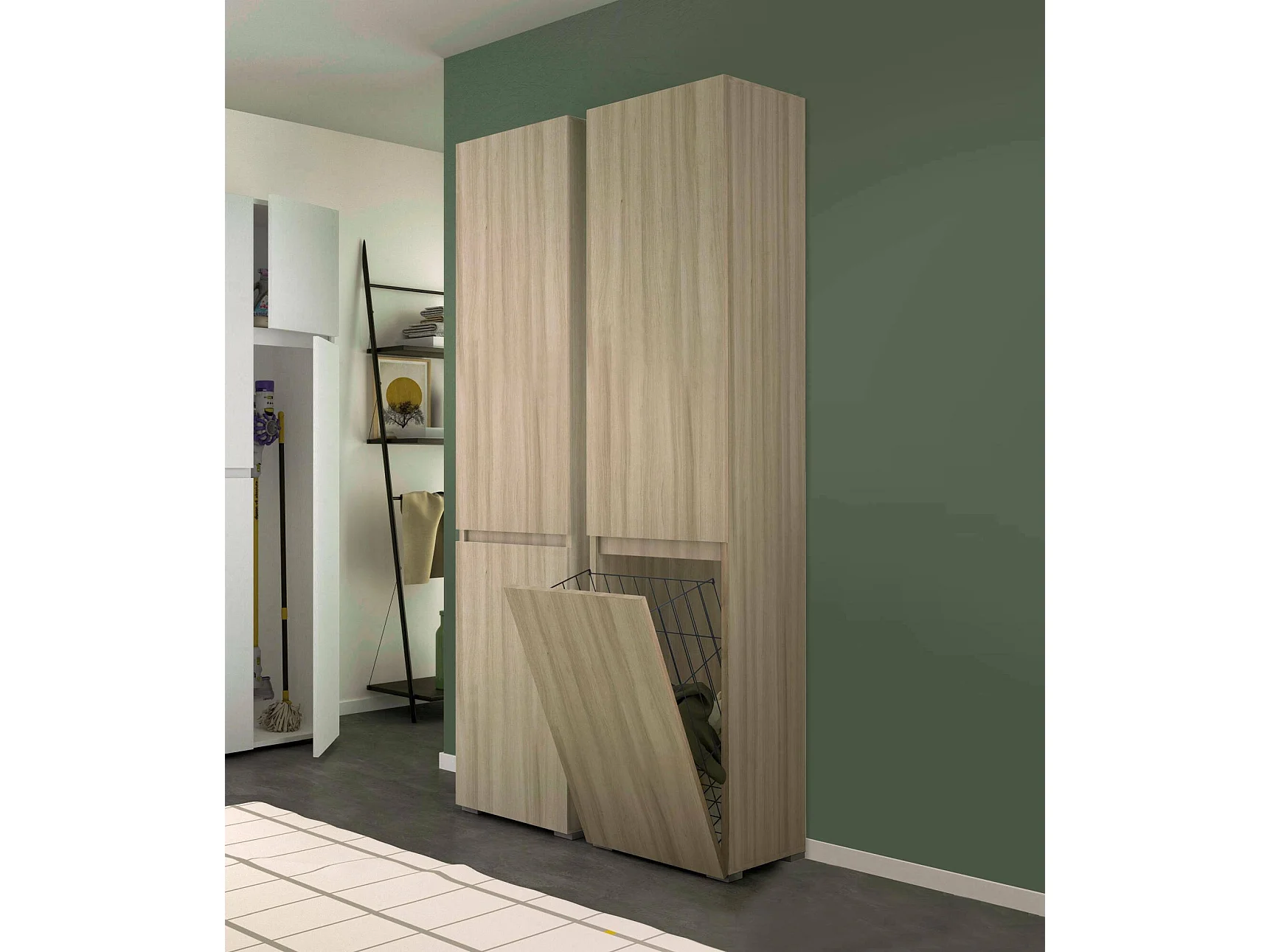 Armadio Multiuso 2 Ante Aro, 2 Ripiani Made in Italy, 37x195h cm Marrone Olmo