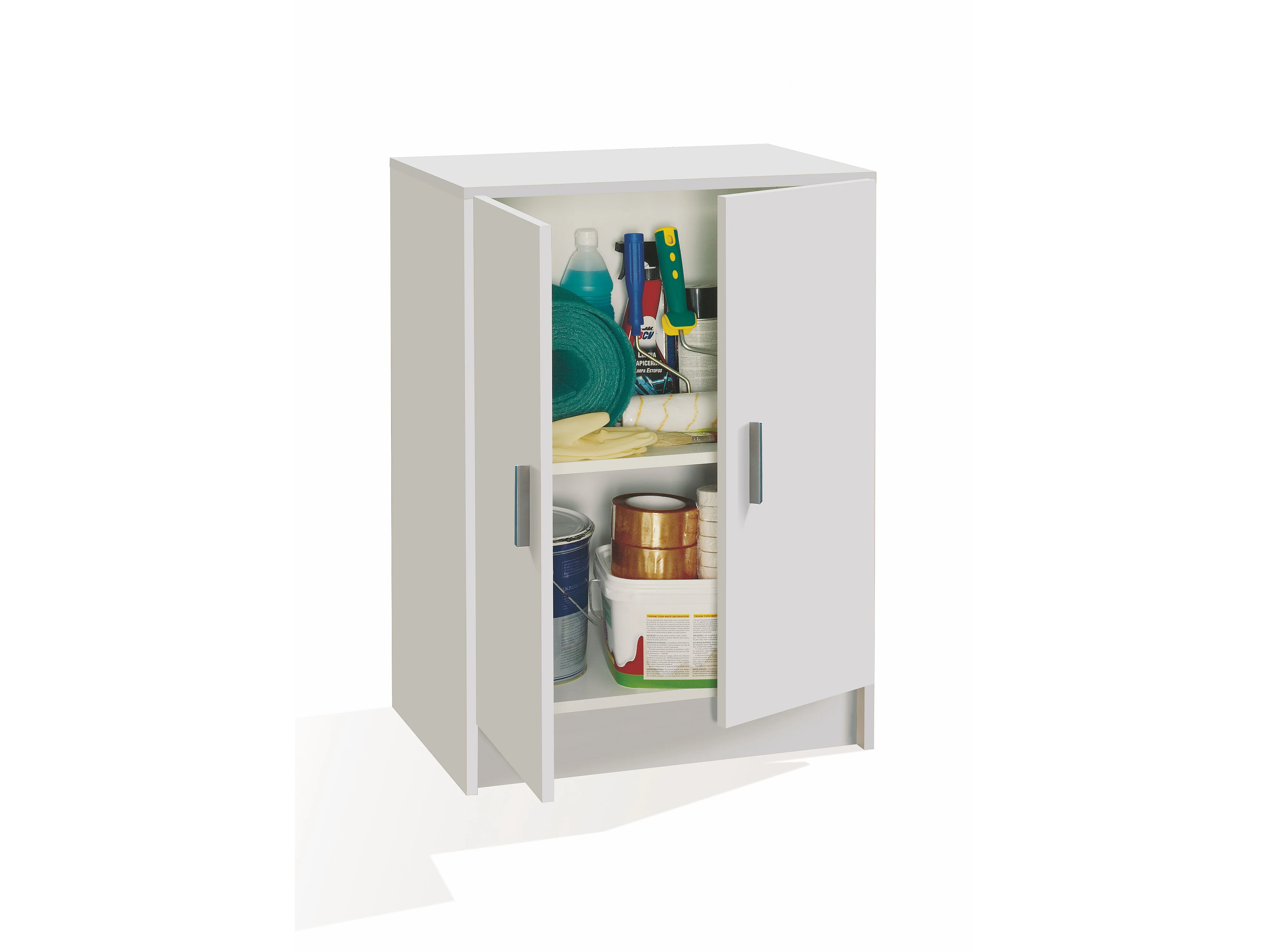 Armadio Multiuso Basso 2 Ante e 2 Ripiani Mobile Ausiliario Per Bagno Lavanderia Cucina Ingresso Garage Design Stile Moderno 60 x 80 x 37 Cm Bianco