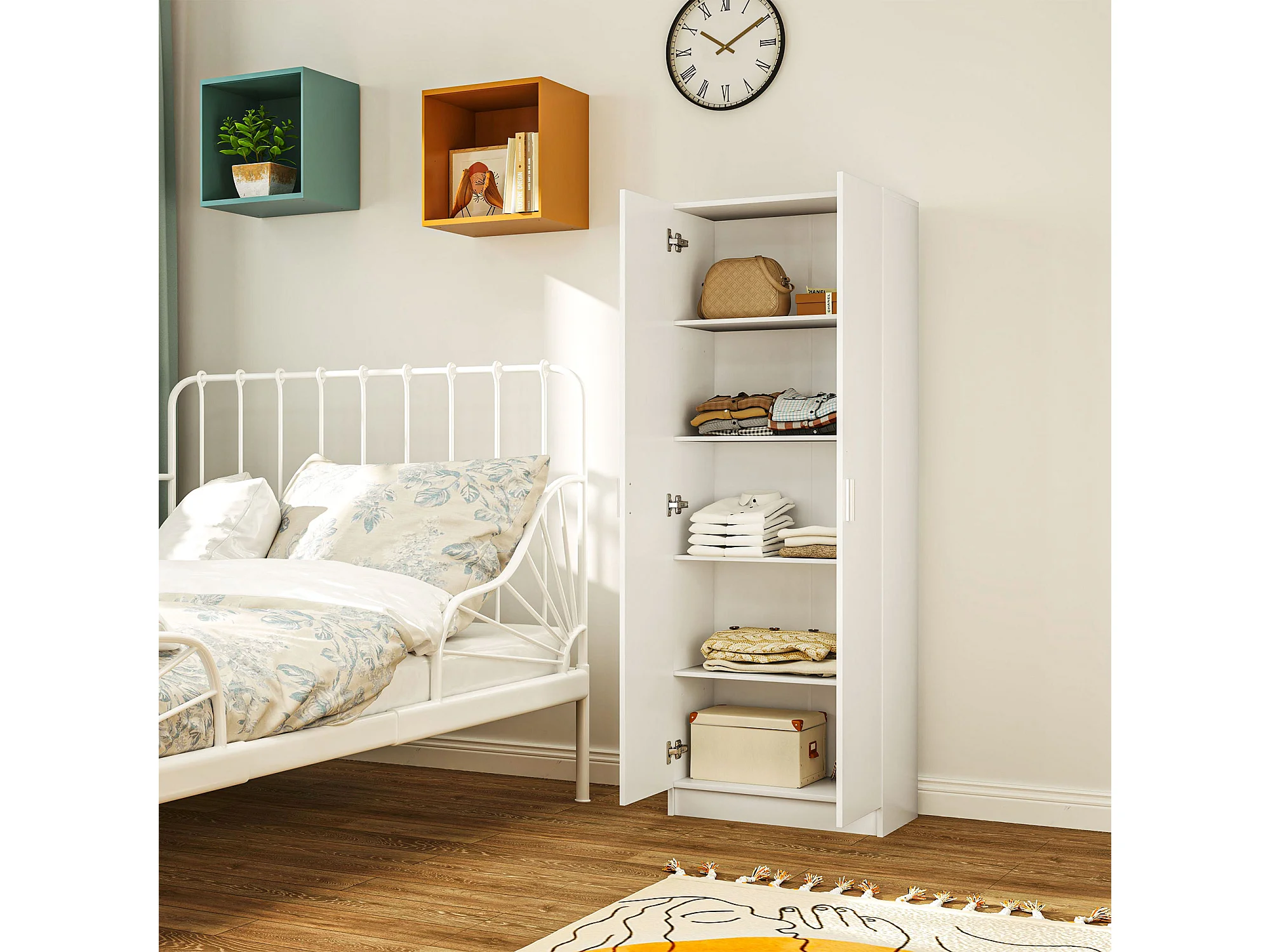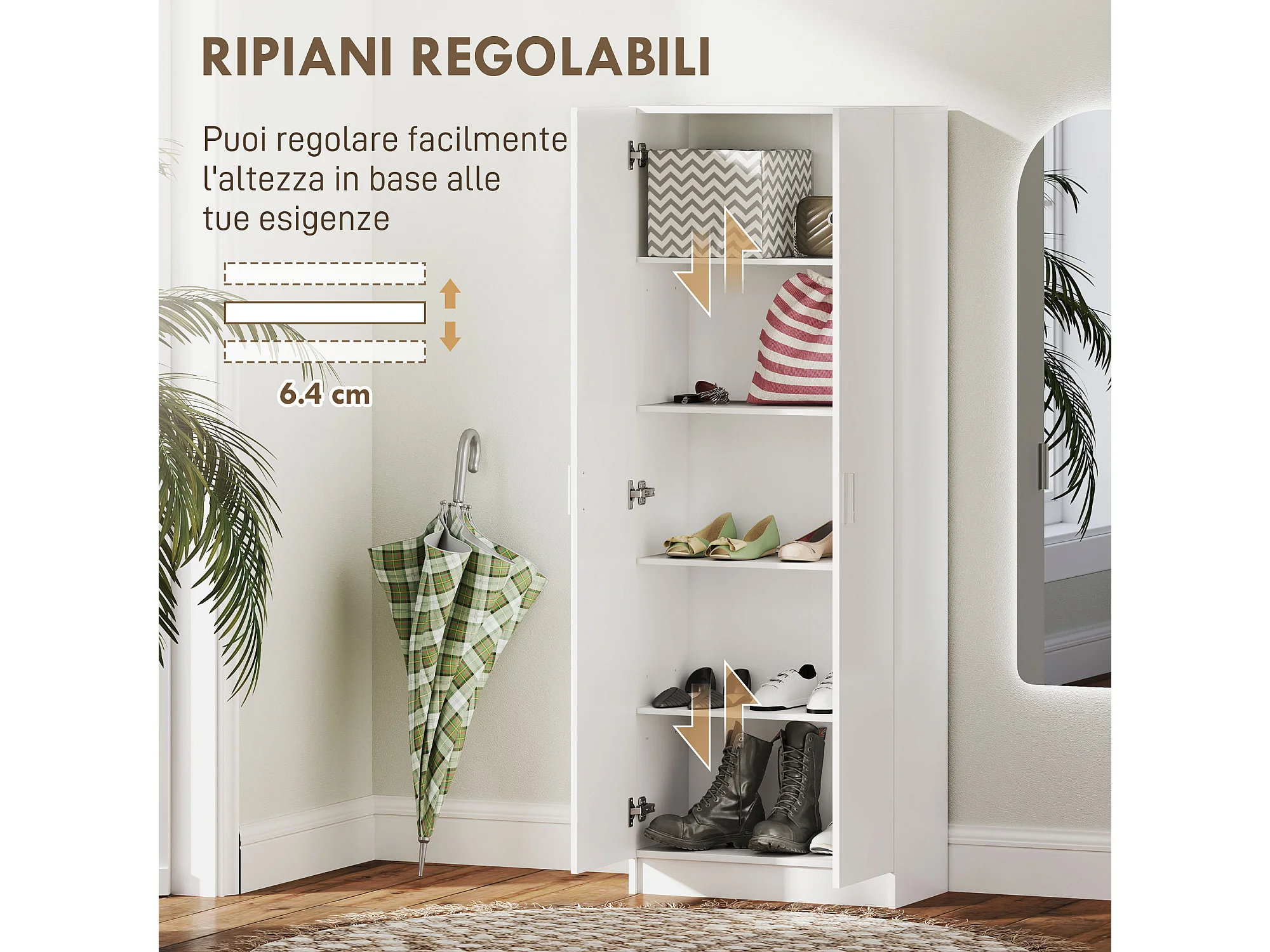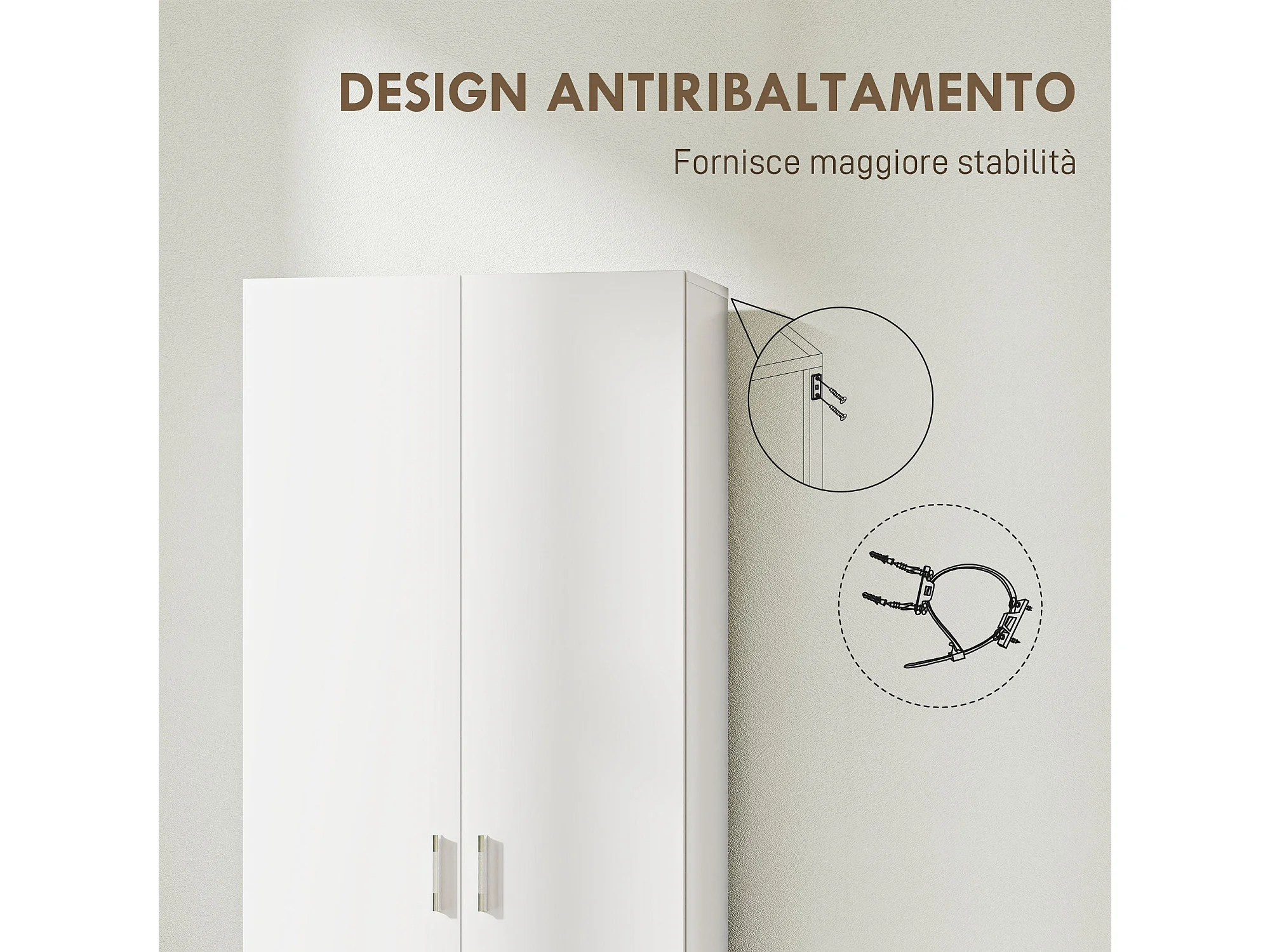 Armadio multiuso con ante battenti 5 ripiani e 3 livelli regolabili