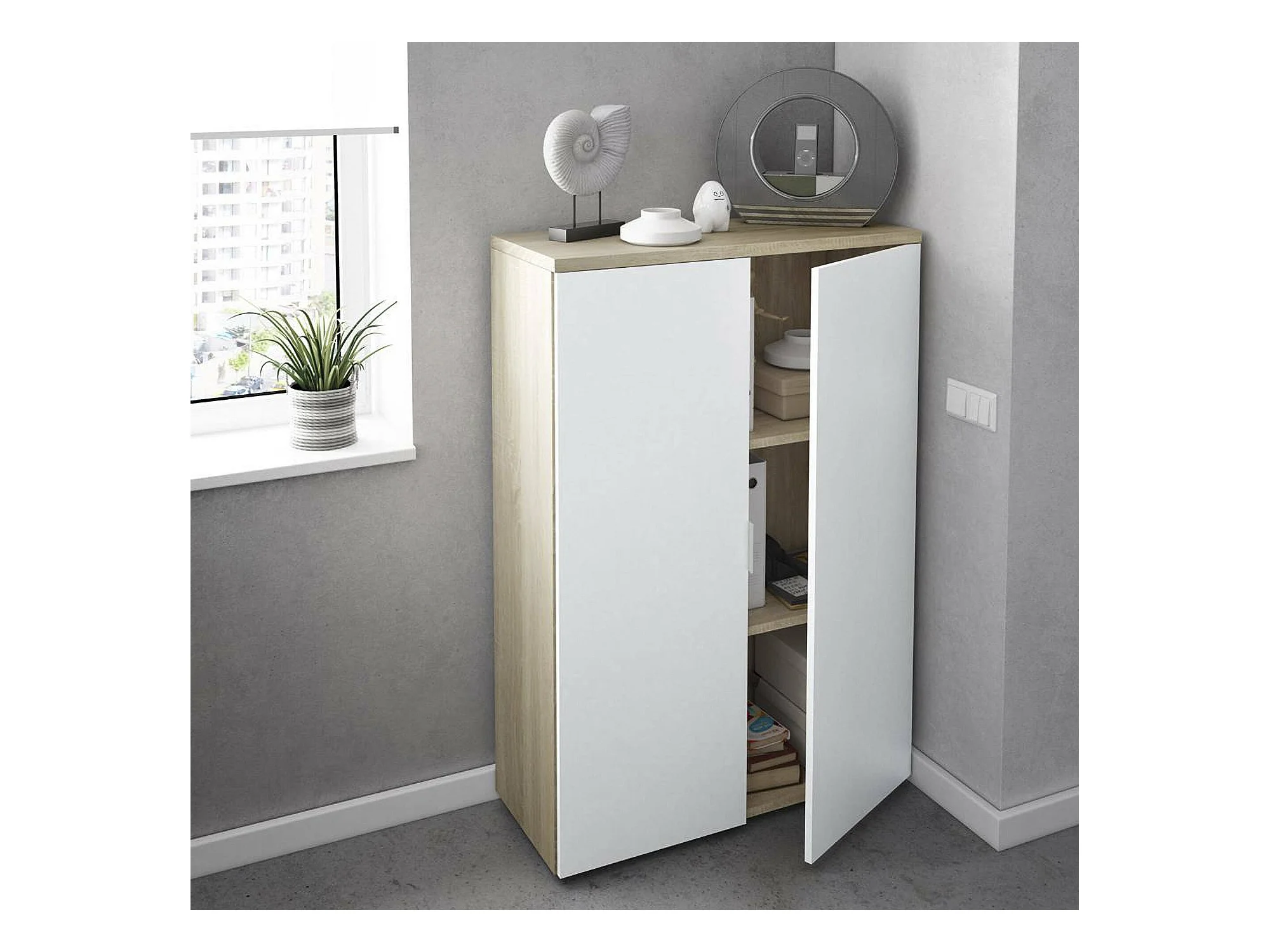 Dmora - Armadio multiuso 2 ante Dionisio, 80x33h119 cm, Rovere e Bianco