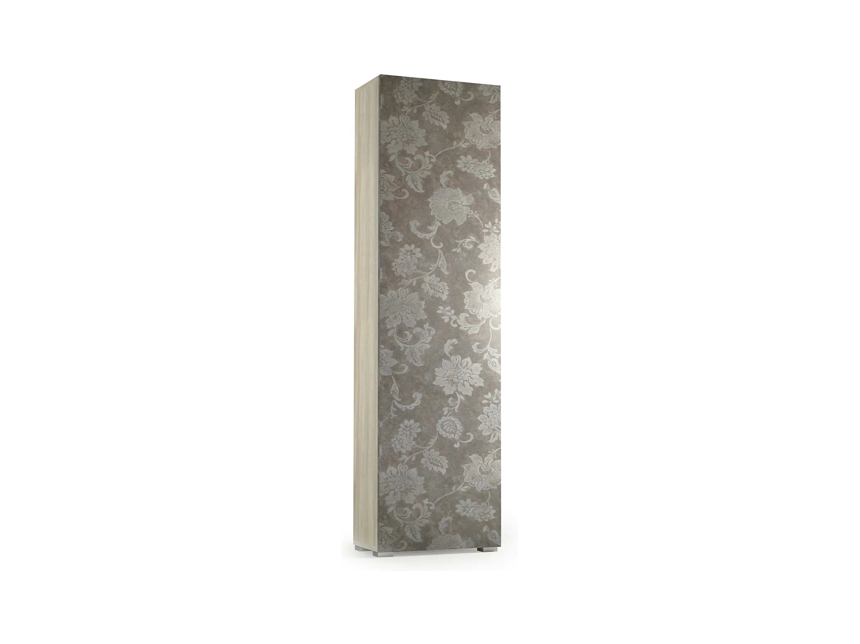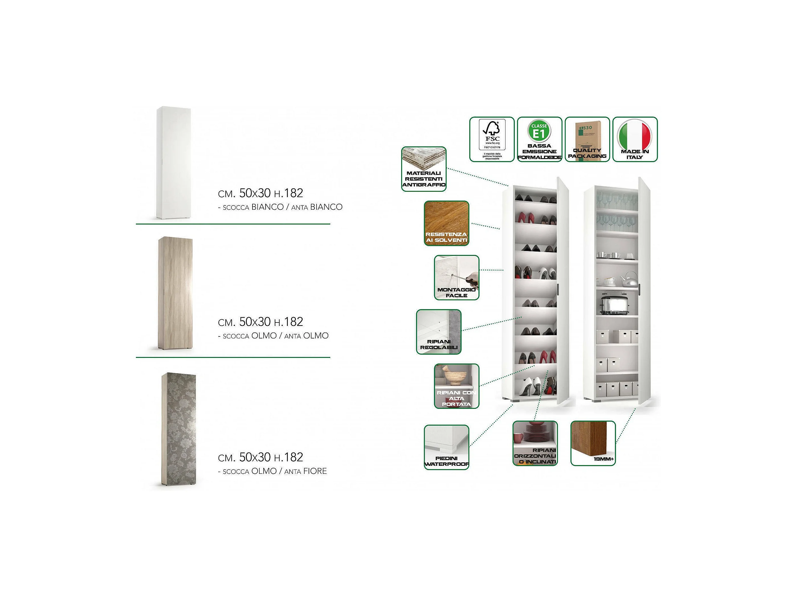 Armadio multiuso Fiordaliso, Mobile lineare a 1 Anta e 7 ripiani, Colonna da ingresso o bagno, Scarpiera moderna, 100% Made in Italy, 50x30h182 cm, Olmo e fantasia