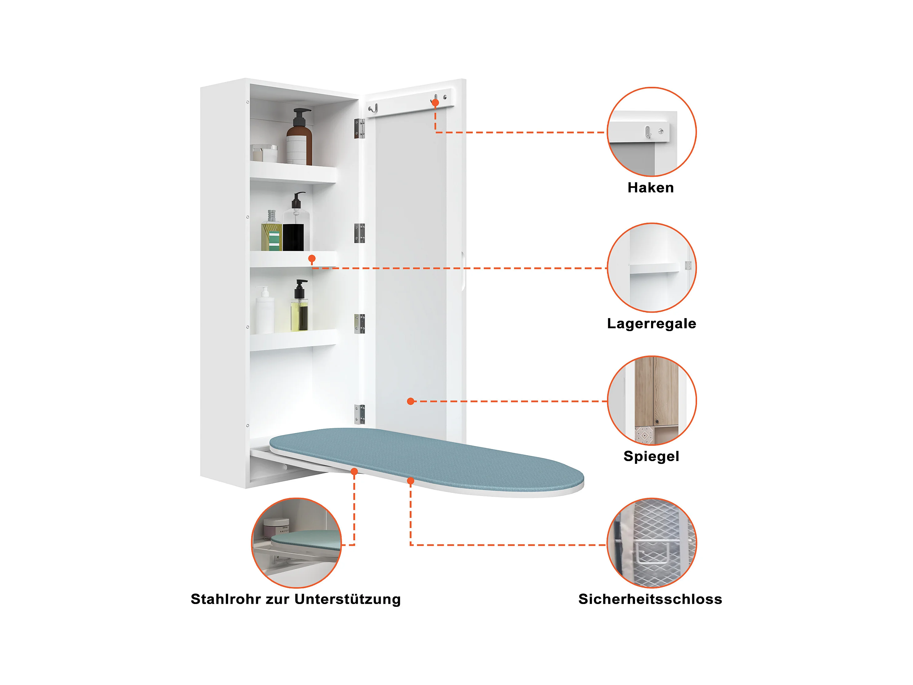 Armadio murale in legno con piano da appoggiare sullo specchio girevole integrato per biancheria o camera bianca