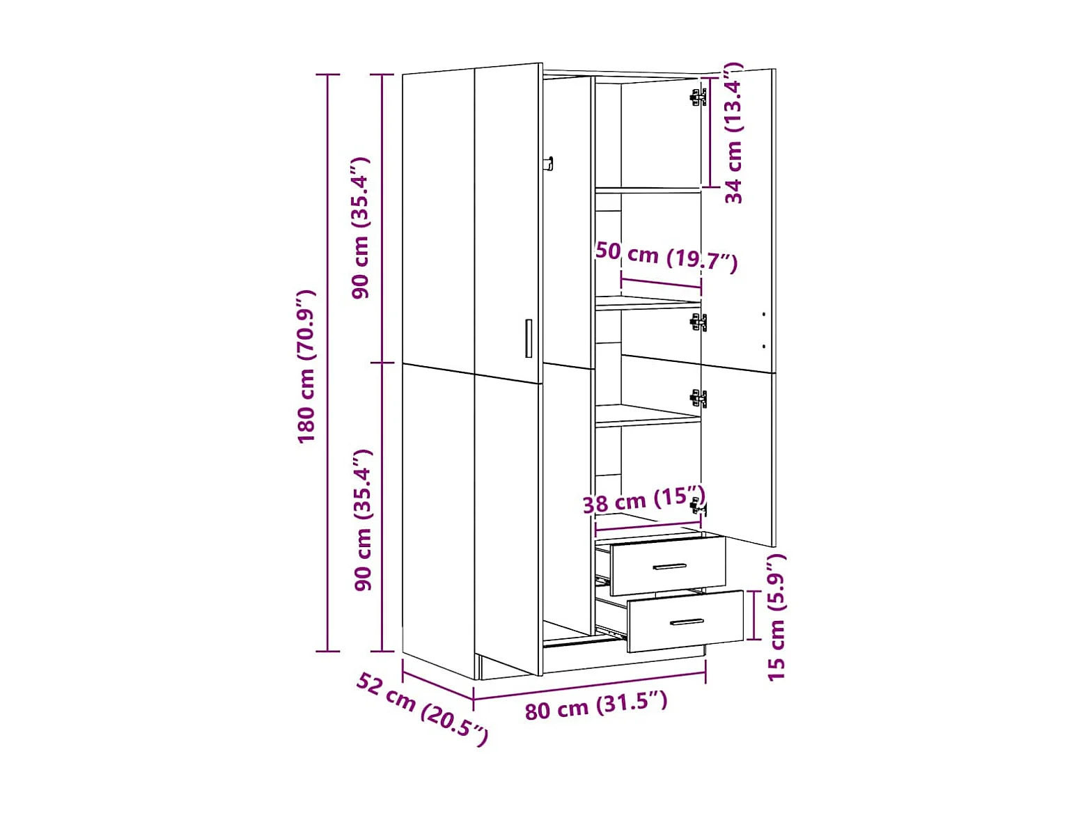 Armadio Nero 80x52x180 cm in Legno Multistrato