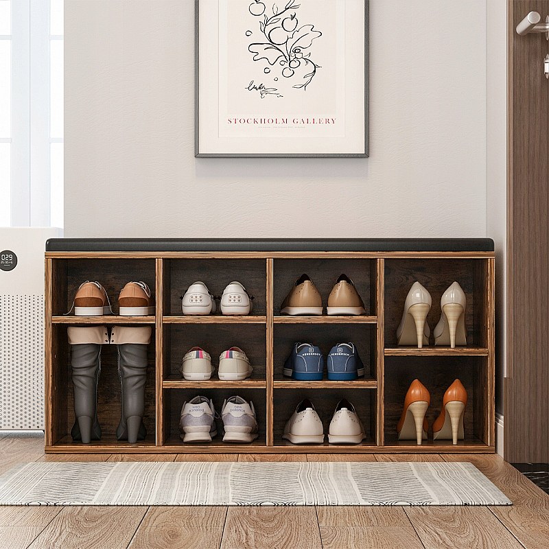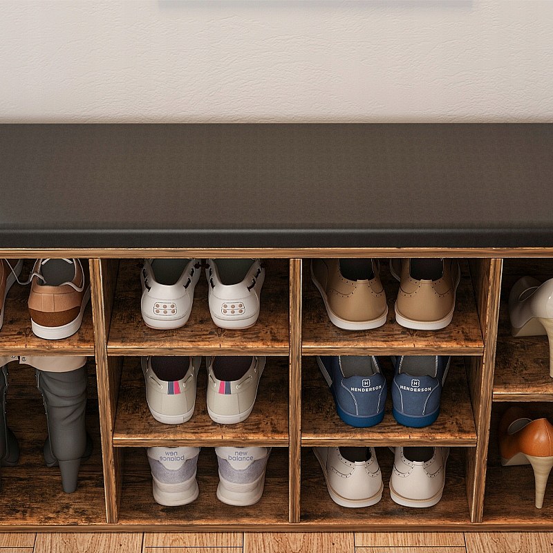ARMADIO PER SCARPE CON SEDUTA PANCA PER INGRESSO MARRONE RUSTICO LOFT