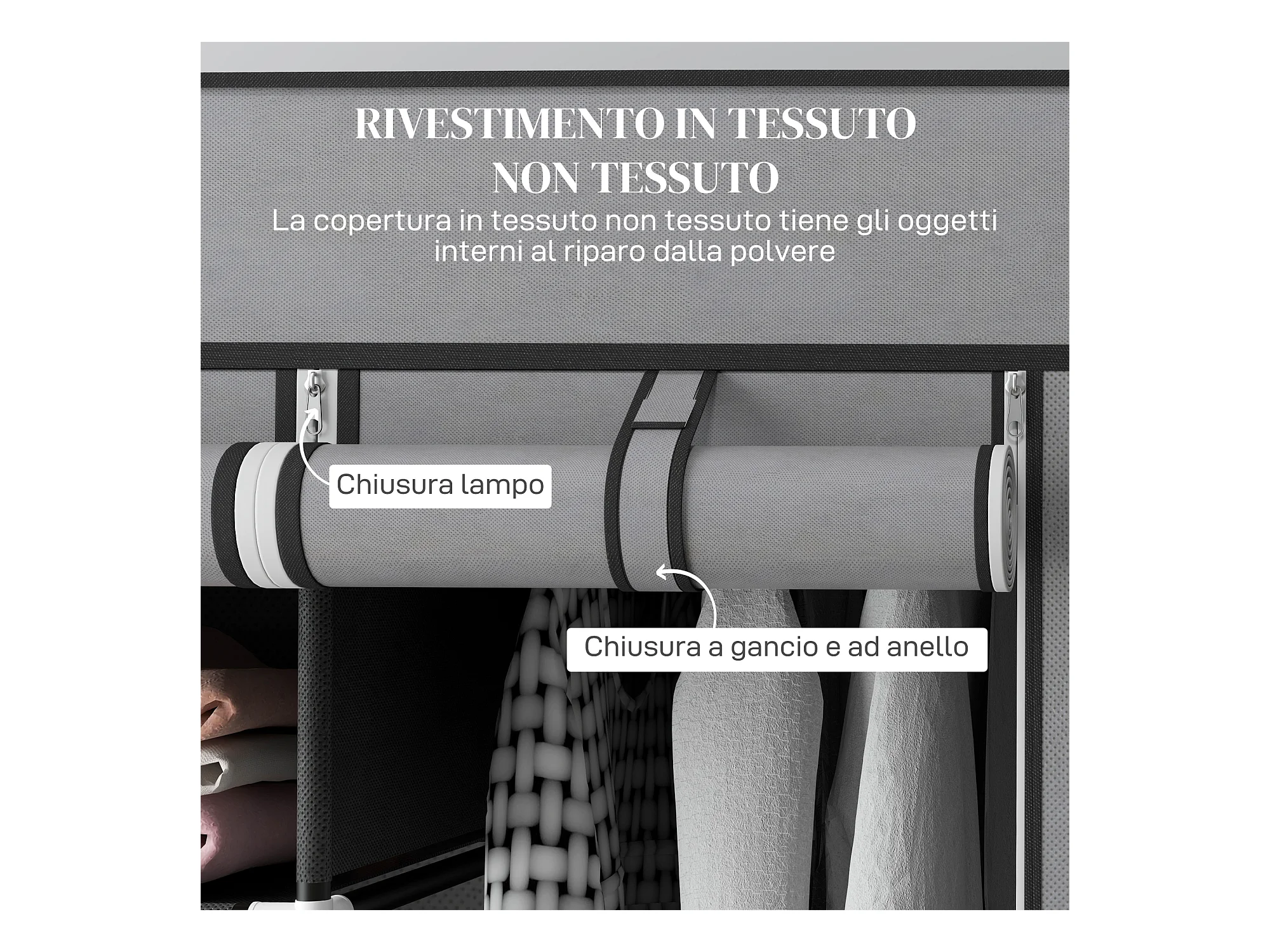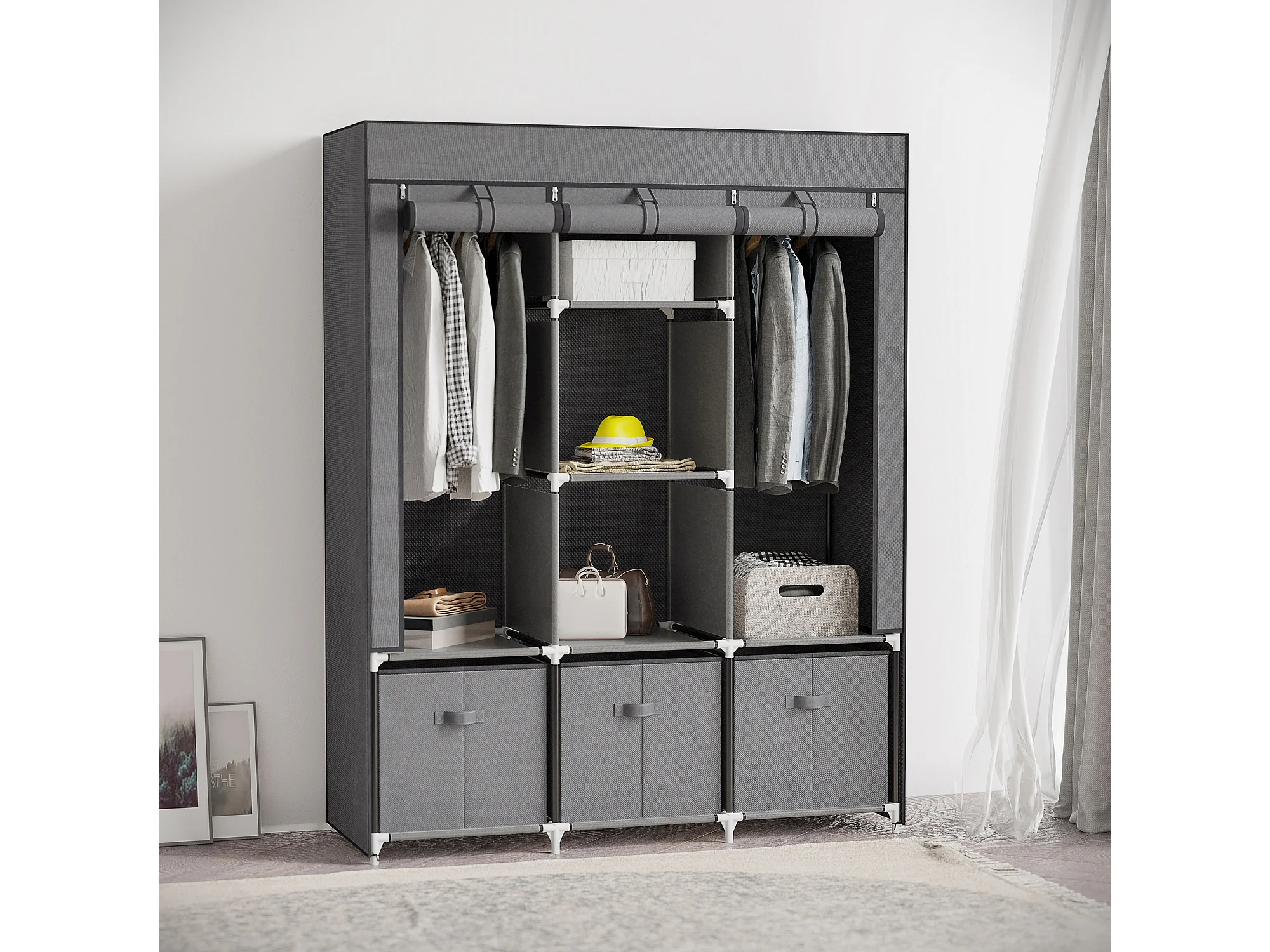 Armadio guardaroba portatile con 6 ripiani e 1 appendino grigio