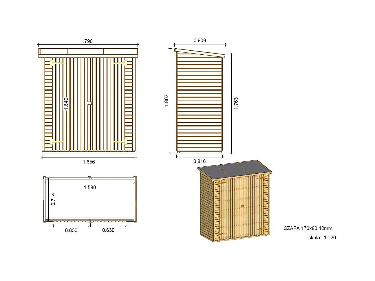 Armadio porta attrezzi da esterno 1.66x0.82 m H.1.86 - con pavimento e parete posteriore - DOM84 - ALTANKA