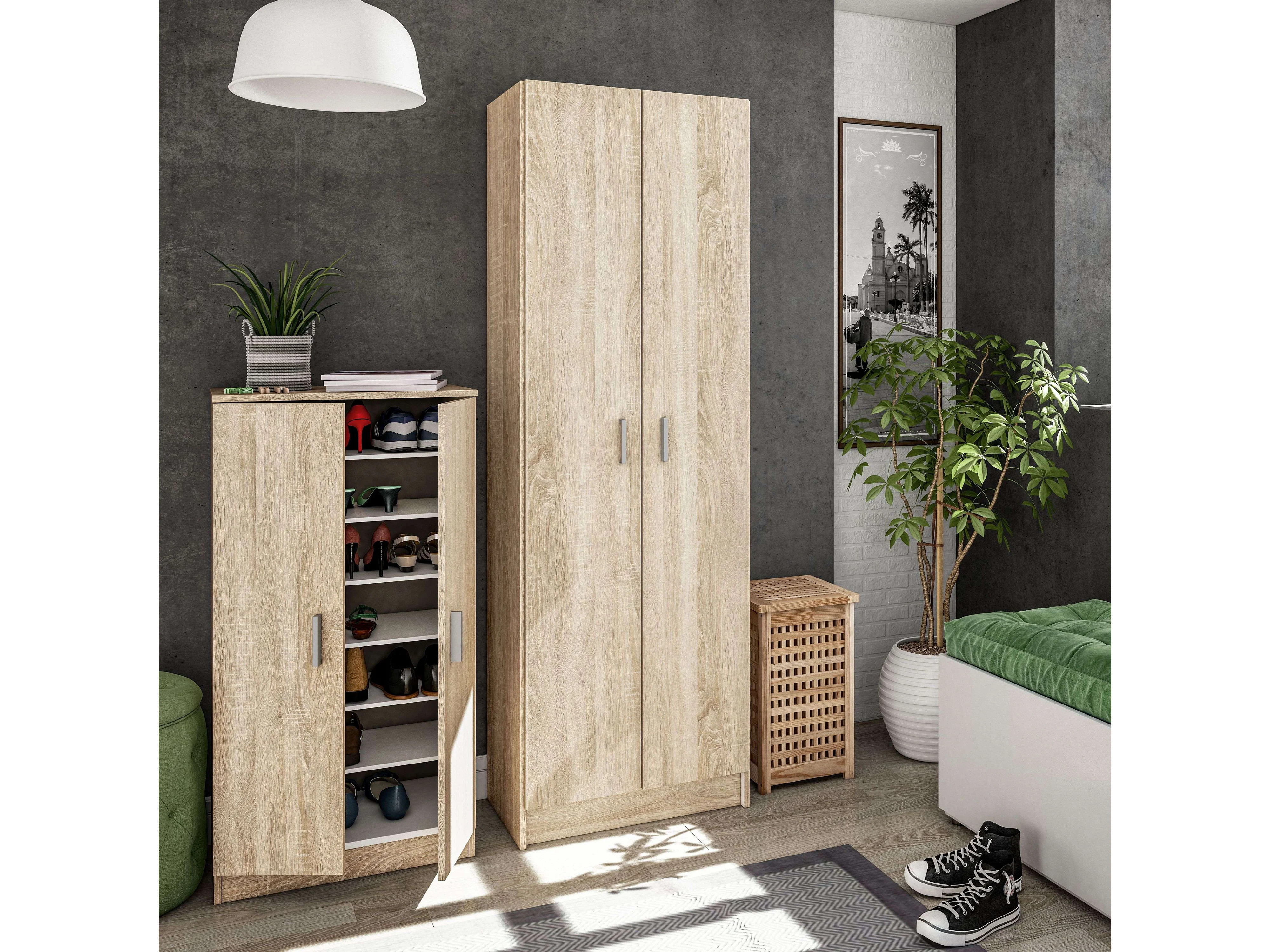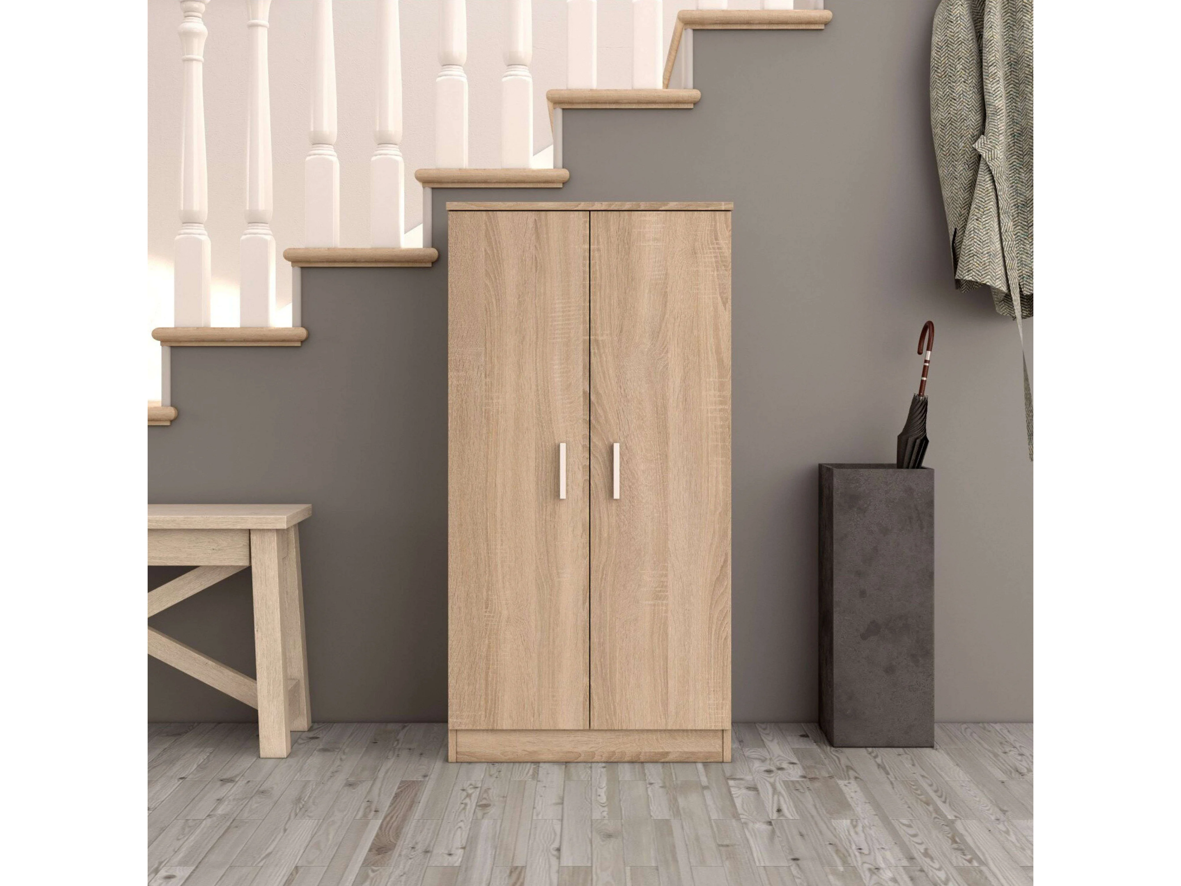 Armadio porta scarpe 2 ante 30 paia, 6 ripiani, rovere chiaro o bianco, H108cm, pratico per ingresso
