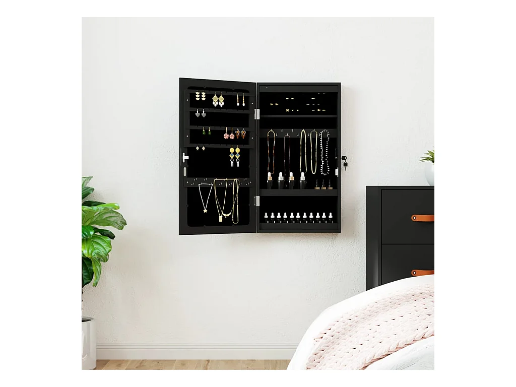 Armadio Portagioie a Specchio con Luci LED a Parete Nero