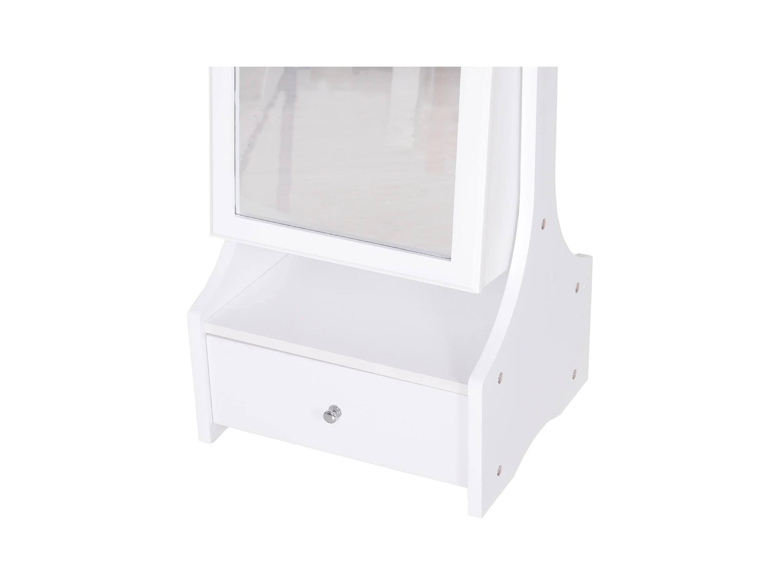 Specchio portagioie girevole con ripiani e chiusura a chiave bianco