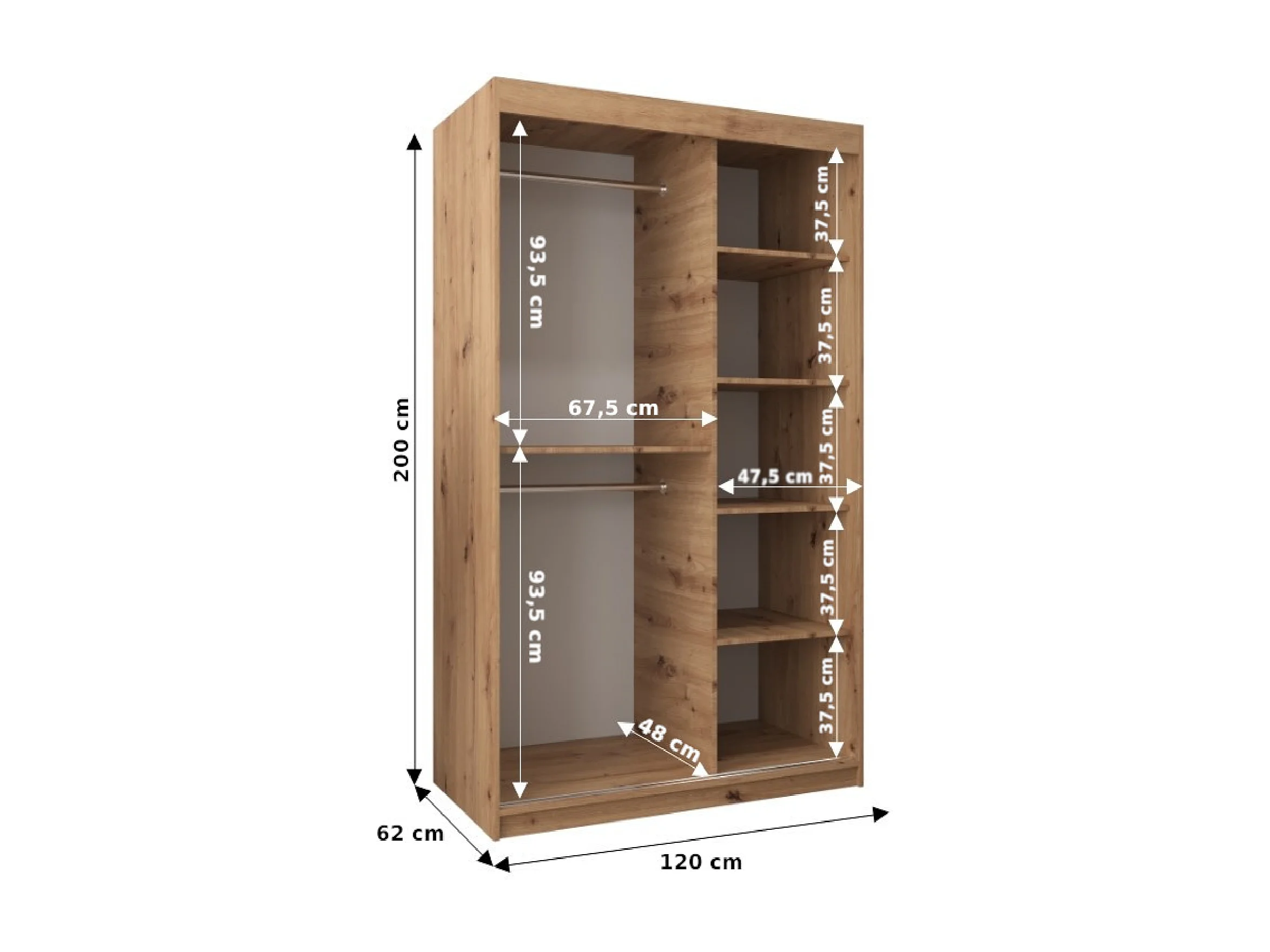 Armadio con porte scorrevoli Roma 2 200/120/62 2 porta (Bianco/Sonoma)