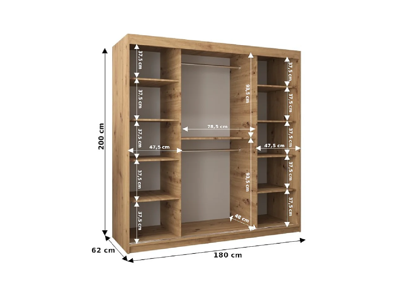 Armadio Tokyo 3 ad ante scorrevoli 200/180/62 2 porte (nero/artisan)