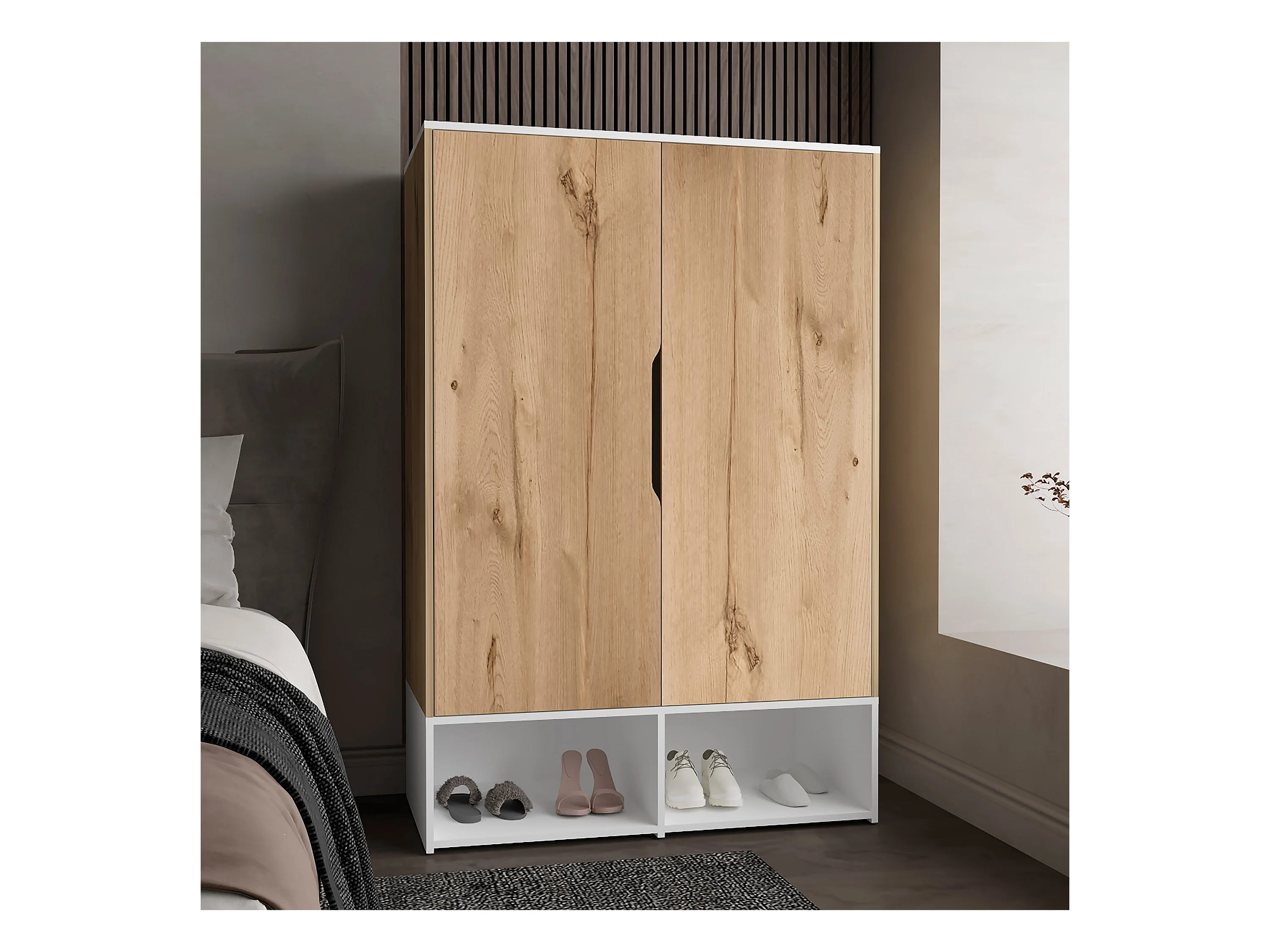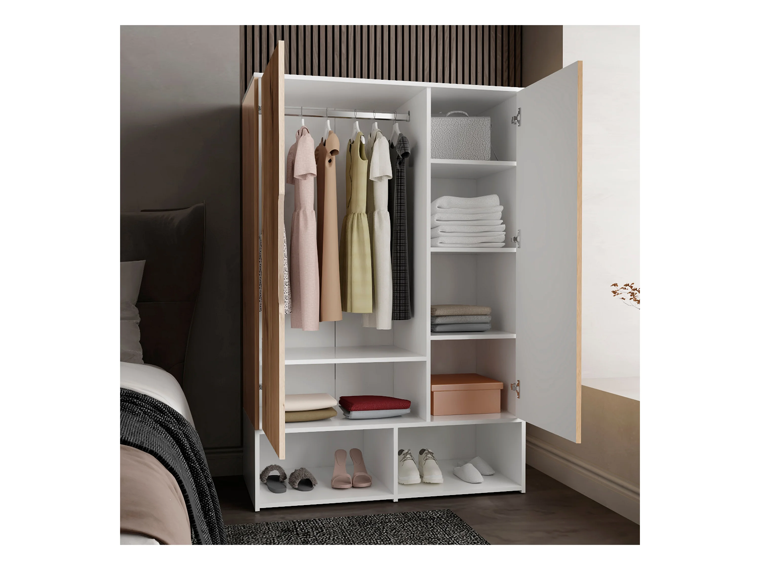 Armadio in melamina Rosie, due ripiani aperti, doppia anta, cinque ripiani, appendiabiti, 149.86 cm X 99.99 cm X 50 cm, Multicolore