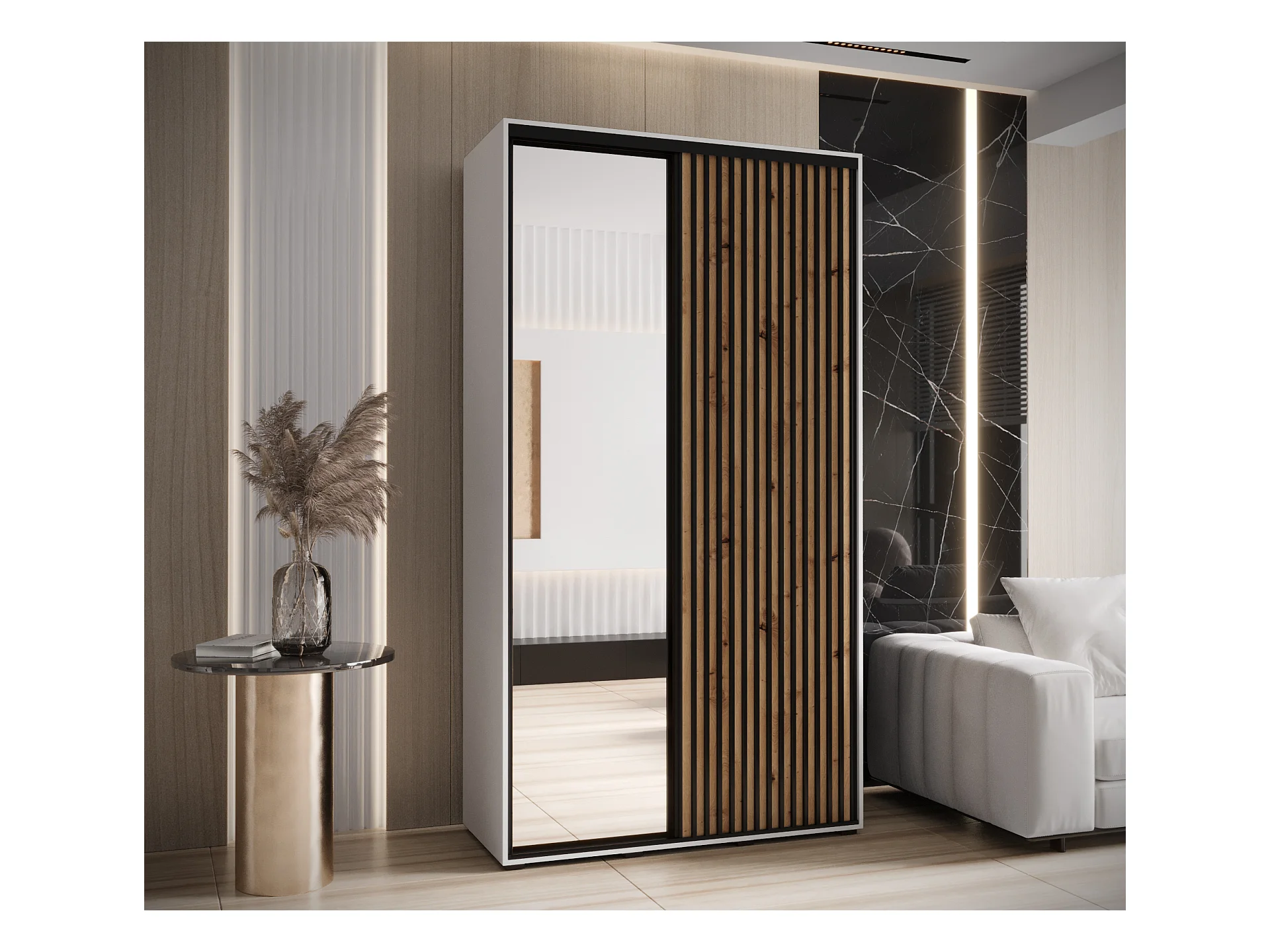 ARMADIO LANKO 2 AD ANTE SCORREVOLI 235,2/130/45 2 porte (Bianco/Artisan)