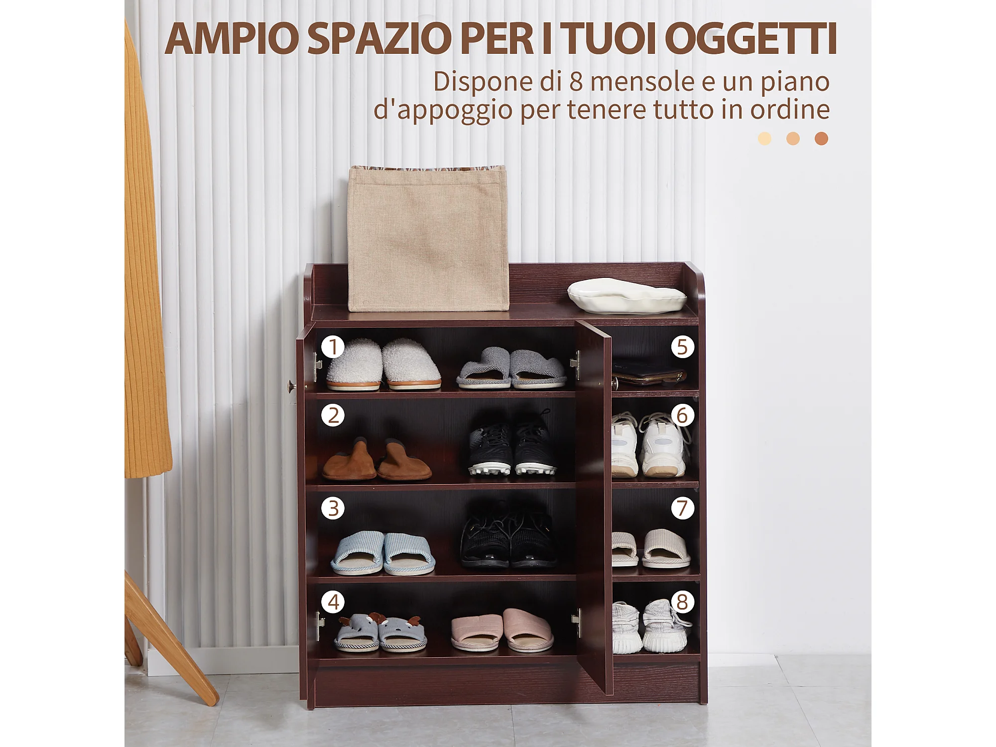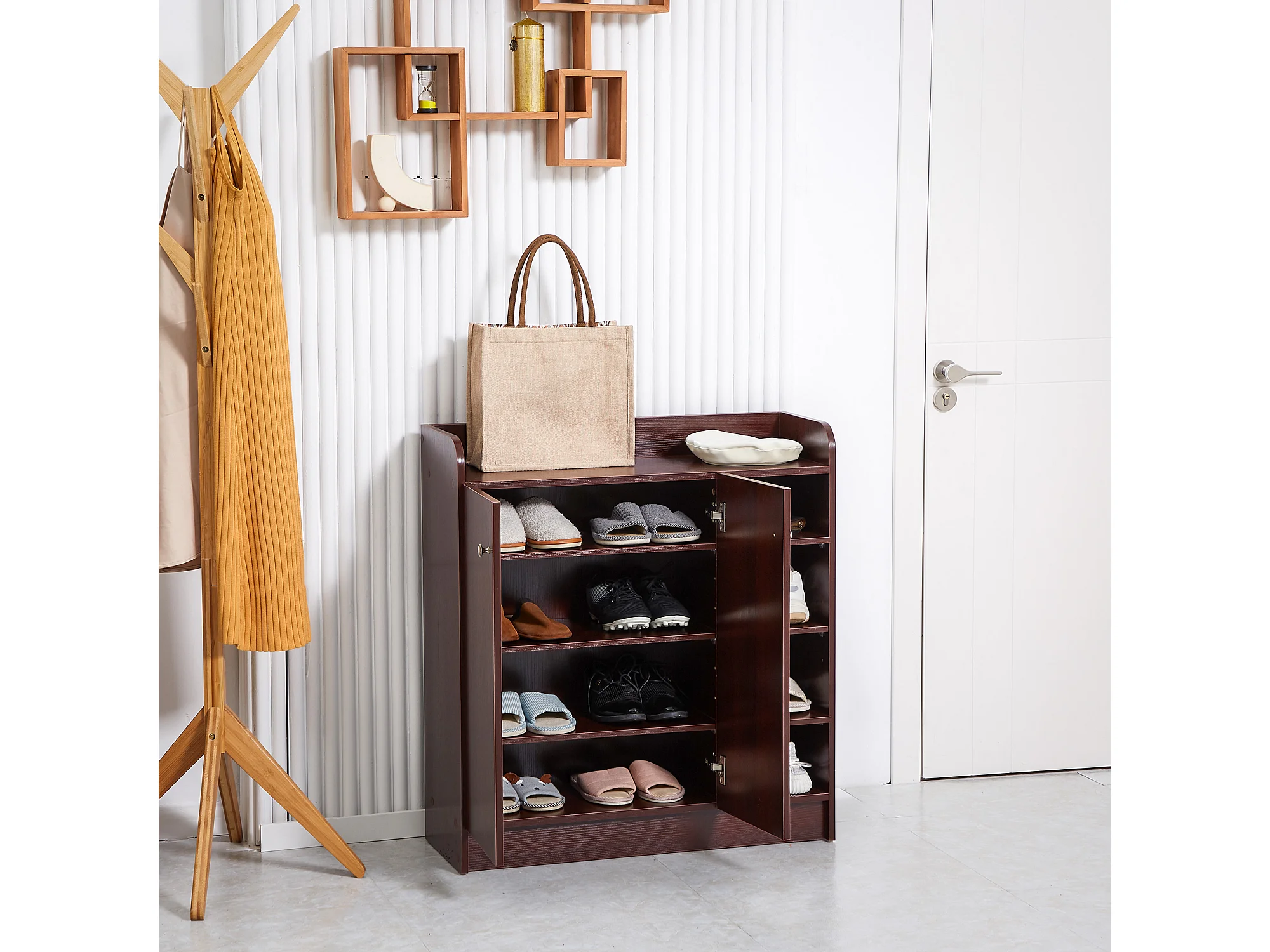 Armadio scarpiera salvaspazio e moderna in legno color caffè